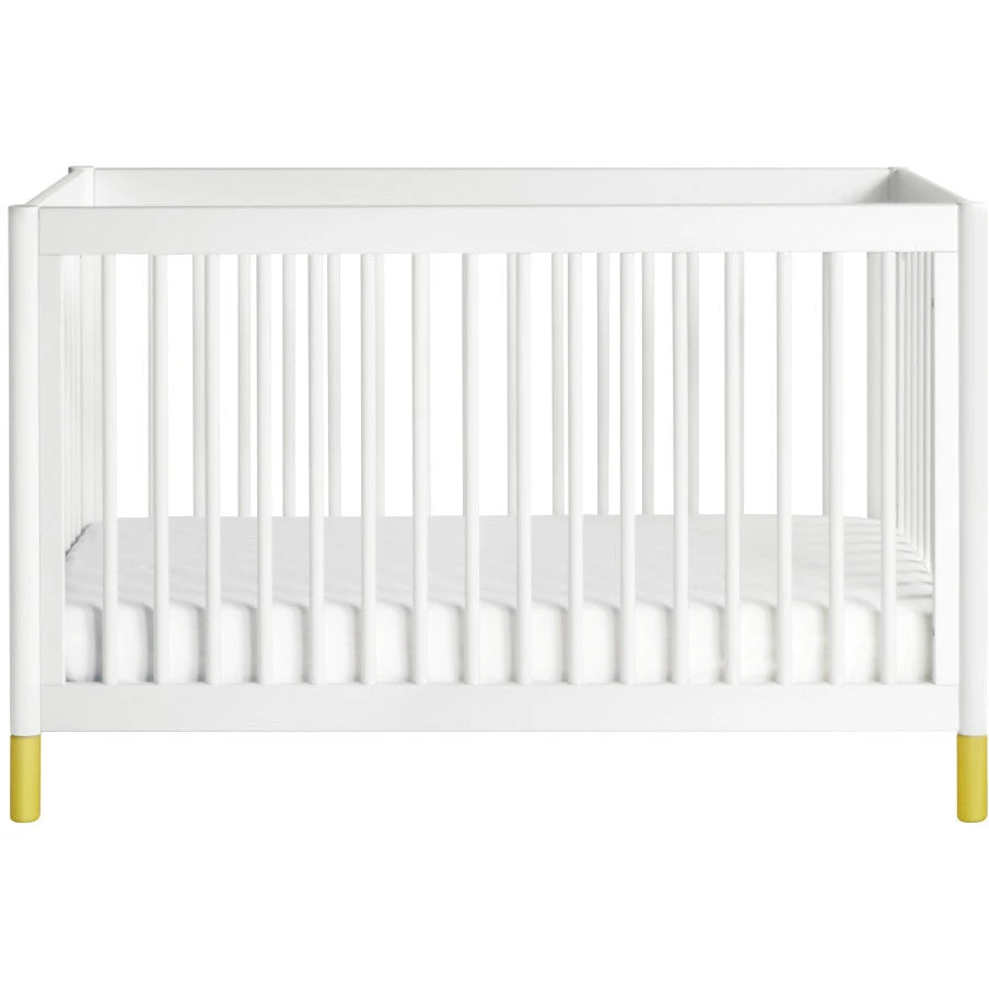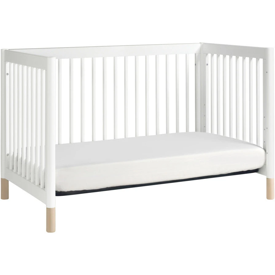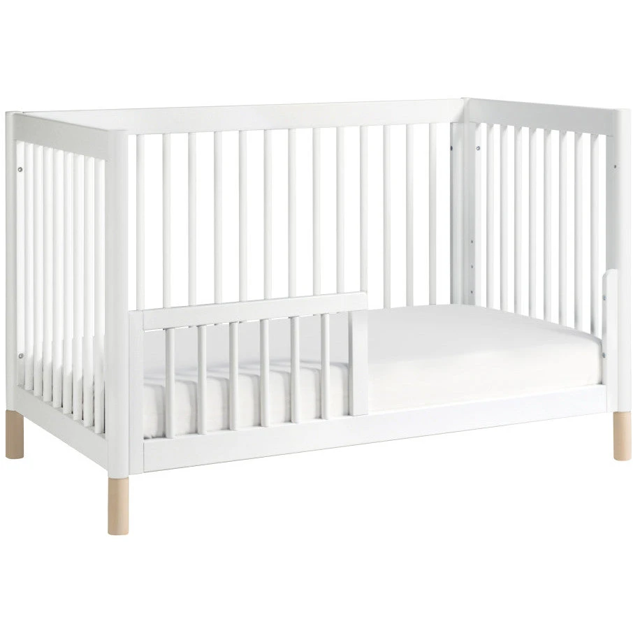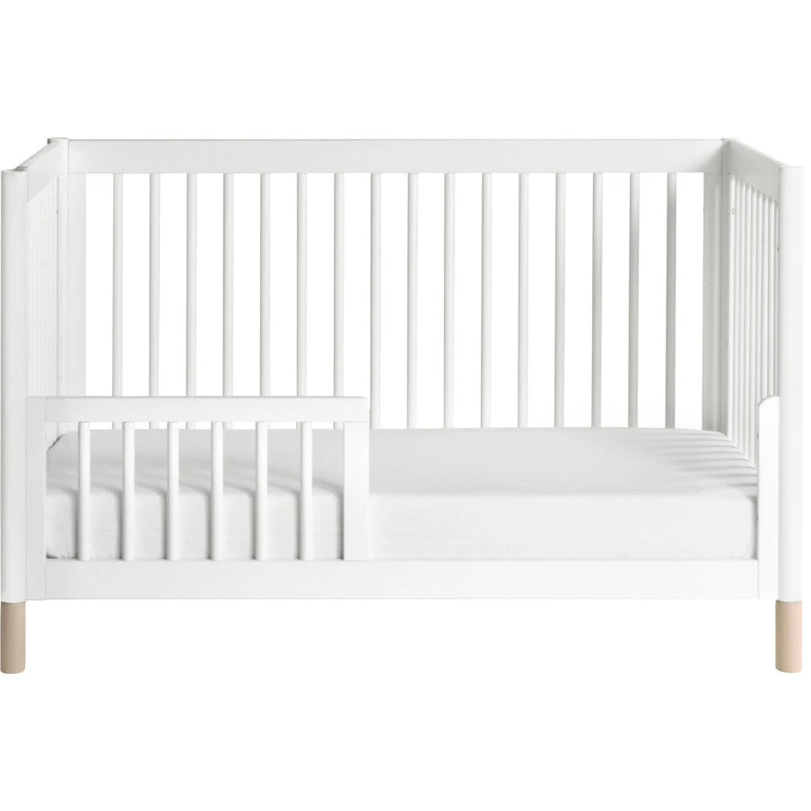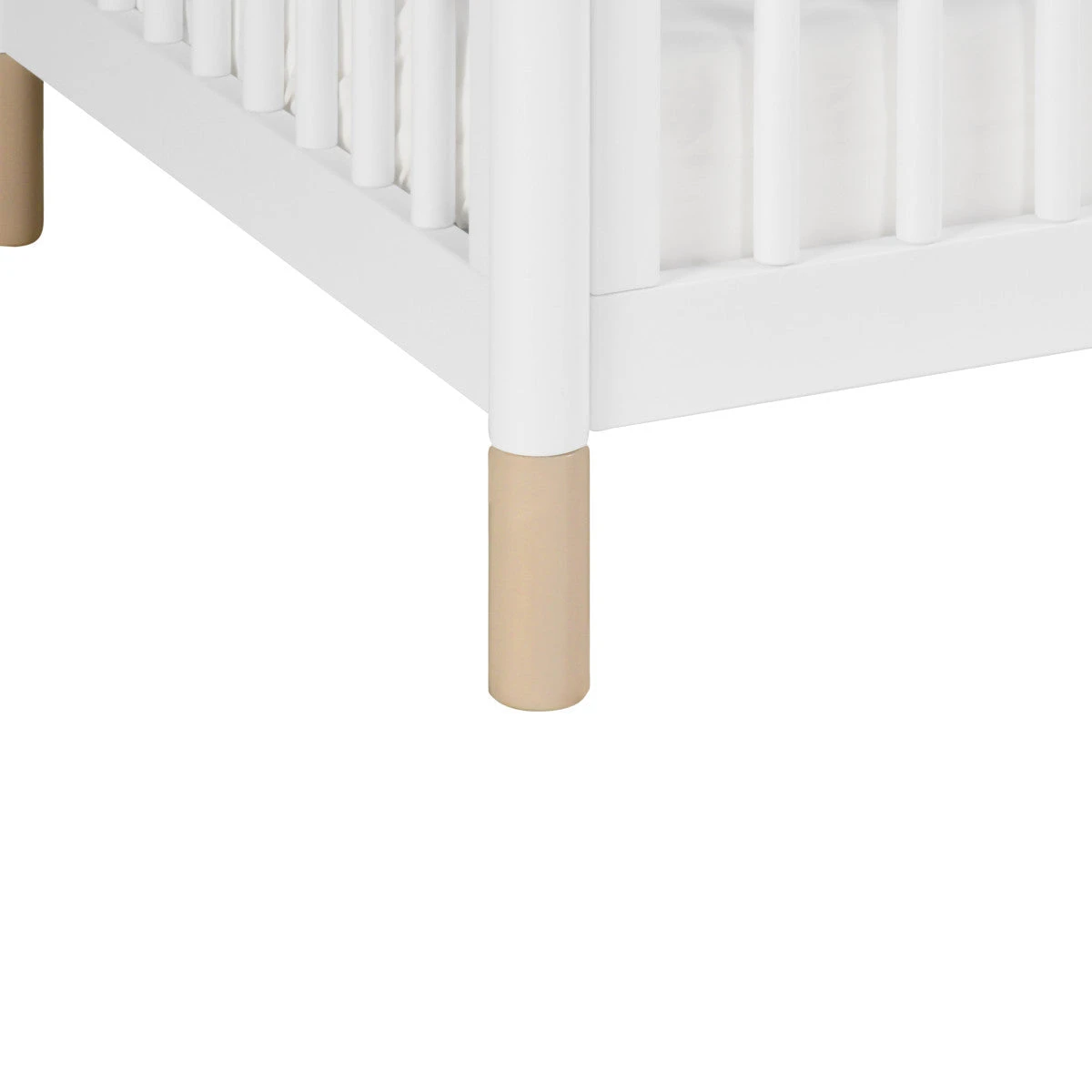 The Gelato 4-in-1 Convertible Crib brings playful practicality to your nursery. Rounded spindles make this crib simple yet a total statement piece while rounded posts ensure safety for wobbly toddlers.Â