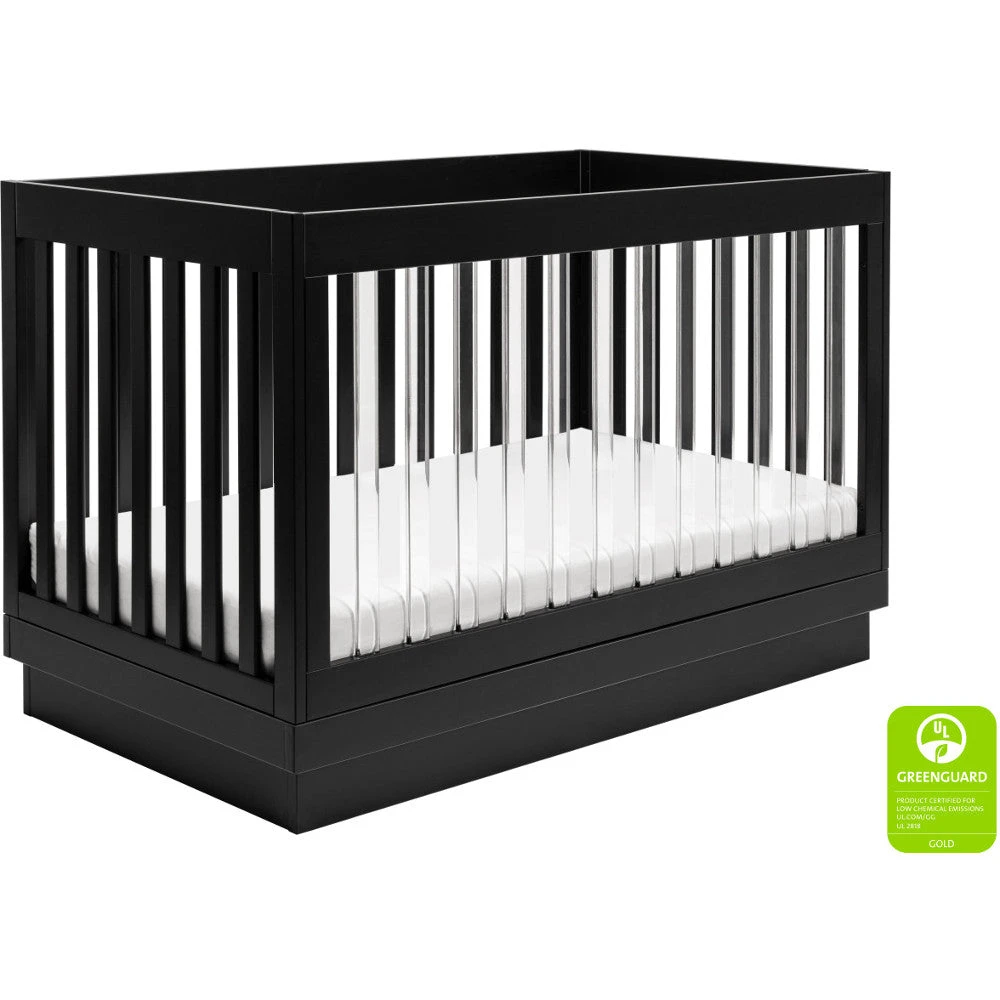 We’ve got your unobstructed front-row seat to see the cutest babe in town! The consciously designed Harlow 3-in-1 Crib is the visual stunner that offers an open and modern focal point for the nursery, and the best views of your sleeping little one so you don’t miss a thing. A sturdy and solid two-tiered wood platform base sets the stage for this chic crib, and an all-acrylic slat front panel accents the star of the show. The Harlow converts to a toddler (wooden rail included) and daybed, and four adjustable mattress positions allow you to set the mattress just right as baby grows. Considerably made from sustainable New Zealand pine wood and recyclable acrylic.