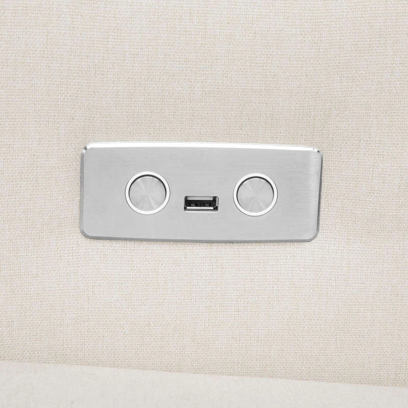 - Modern wingback style recliner with hidden push-button control panel and USB charging port