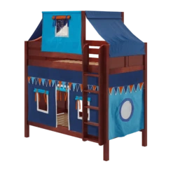 Maxtrix Twin High Bunk Bed With Straight Ladder, Top Tent + Curtain