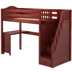 Maxtrix Twin High Corner Loft Bunk Bed With Ladder + Stairs – R