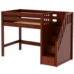 Maxtrix Twin Mid Loft Bed With Straight Ladder, Storage + Desk