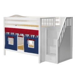 Maxtrix Full Medium Bunk Bed With Angled Ladder, Curtain + Slide