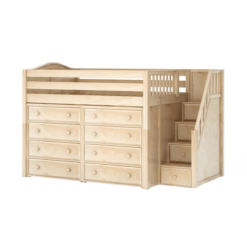 Maxtrix Full Mid Loft Bed With Stairs, Curtain, Top Tent + Slide