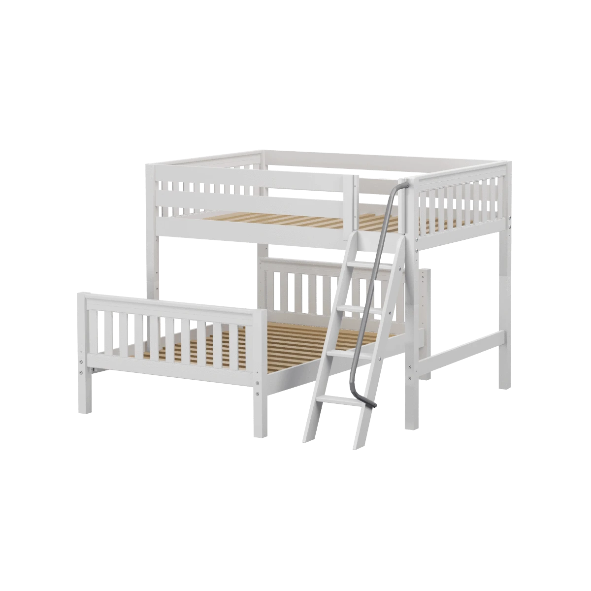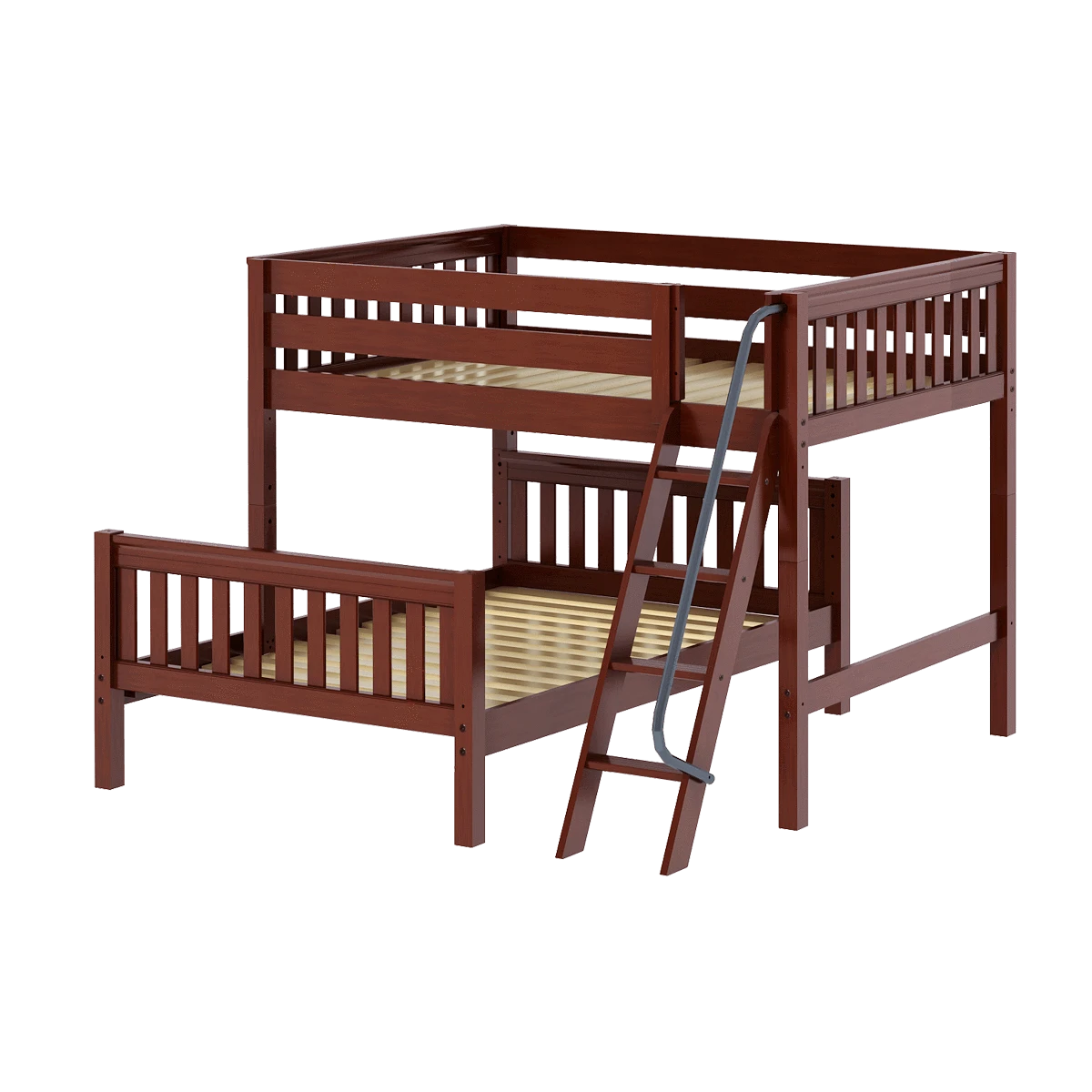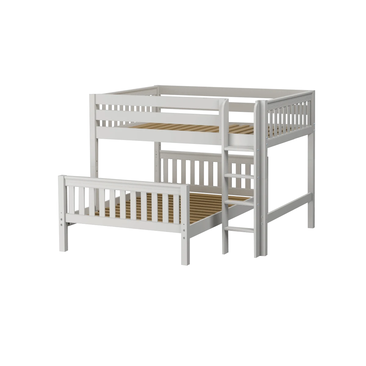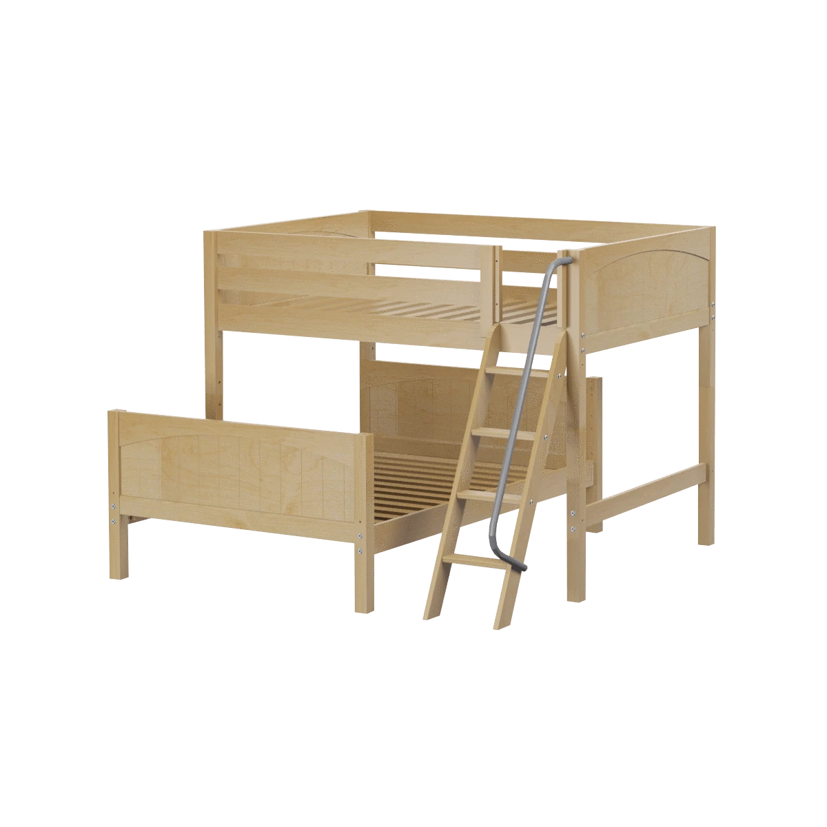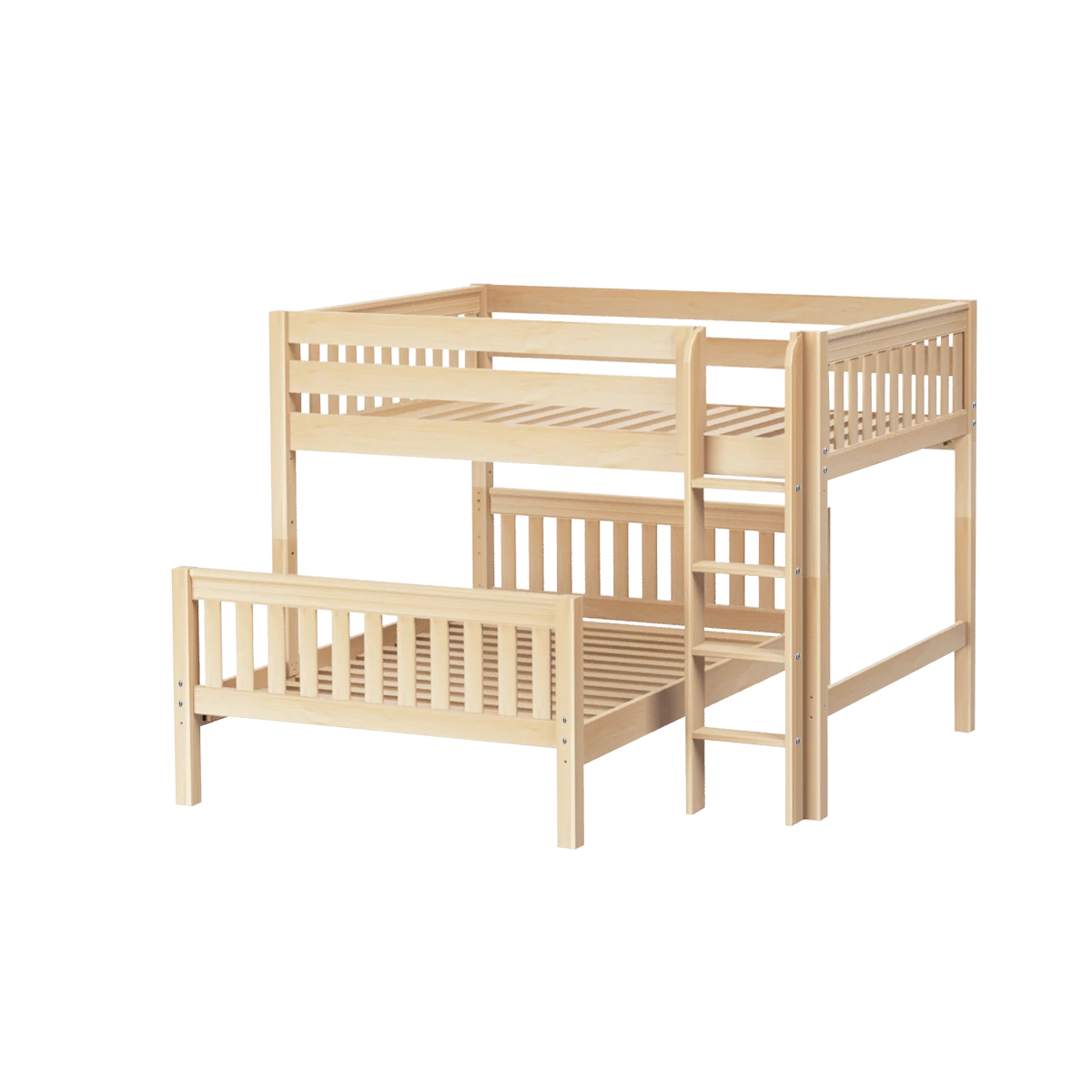 Our Full size L-shaped Bunk Bed can be assembled parallel or perpendicular. Option for space-saving straight ladder or easy to climb angled ladder with handrail.