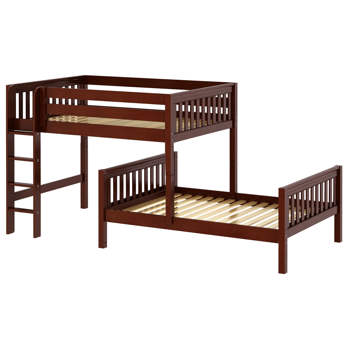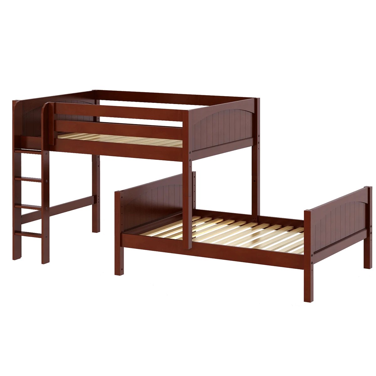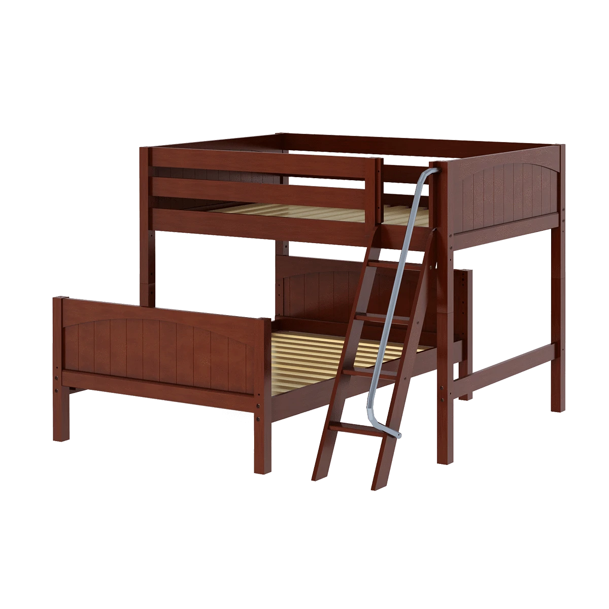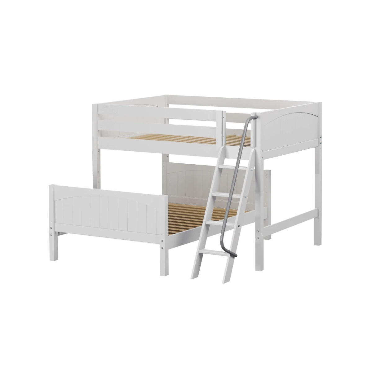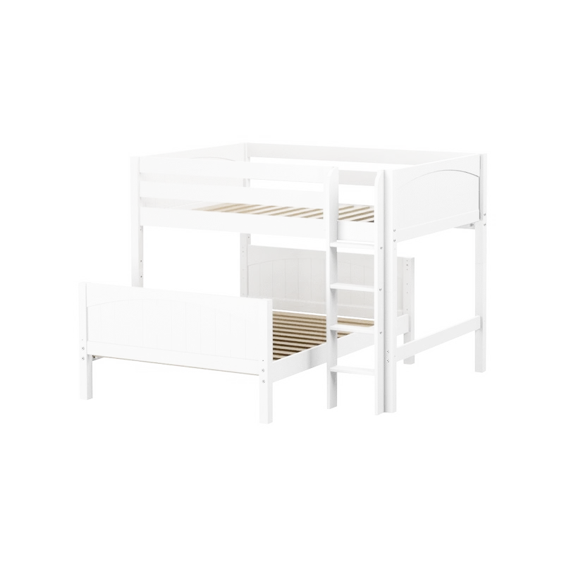 Our Full size L-shaped Bunk Bed can be assembled parallel or perpendicular. Option for space-saving straight ladder or easy to climb angled ladder with handrail.