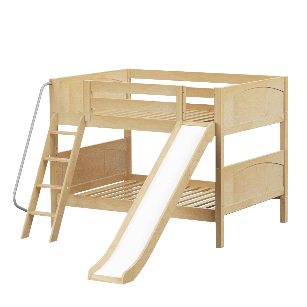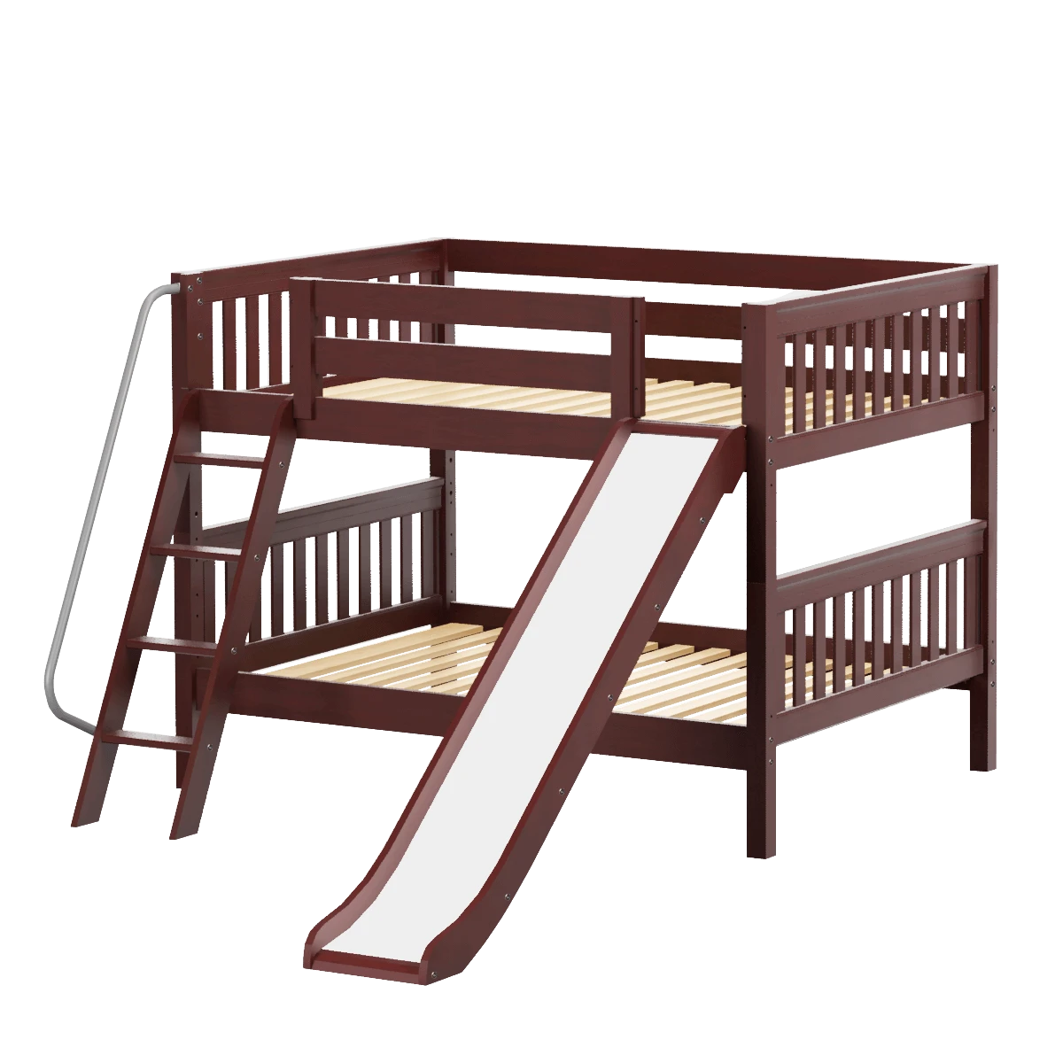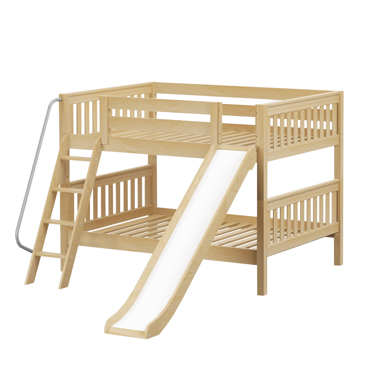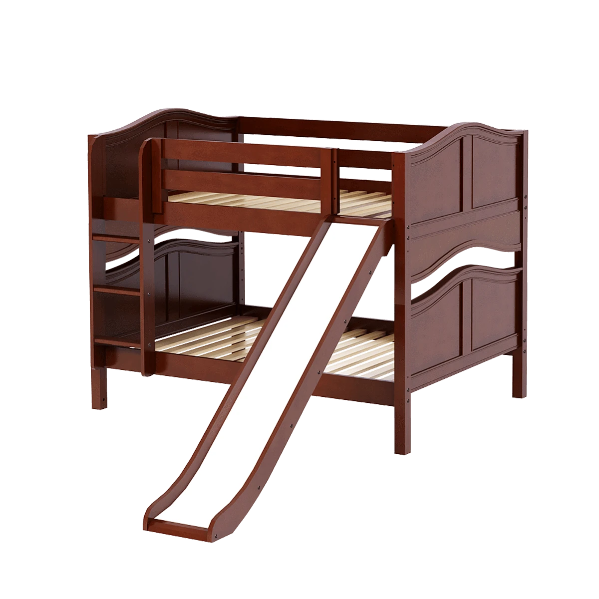 Our classic low bunk gets an extra dose of fun with the addition of a slide! Stacked design sleeps two comfortably – low height is perfect for small rooms and little ones. Full size = extra room for growing kids, sleepovers or snuggling with parents.
