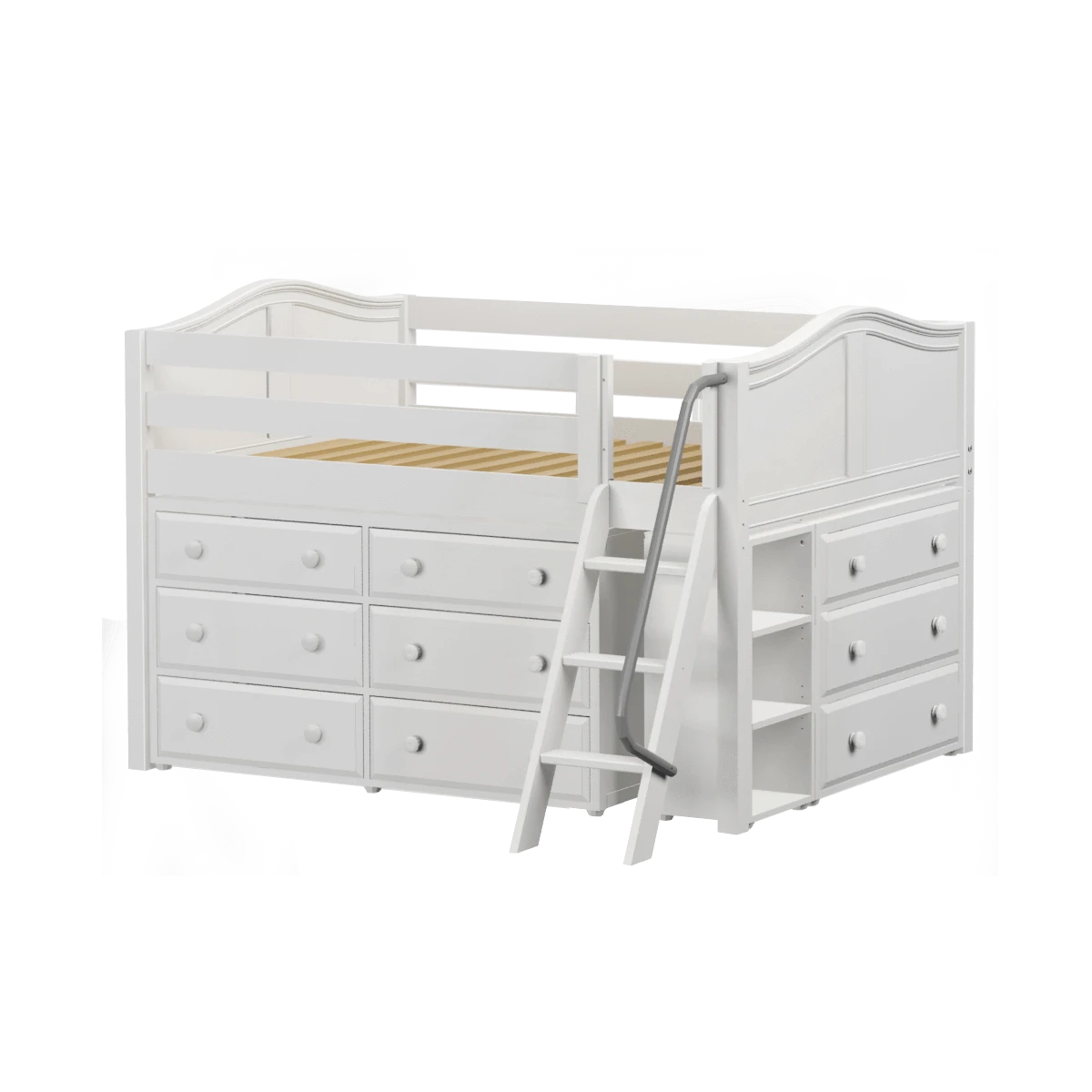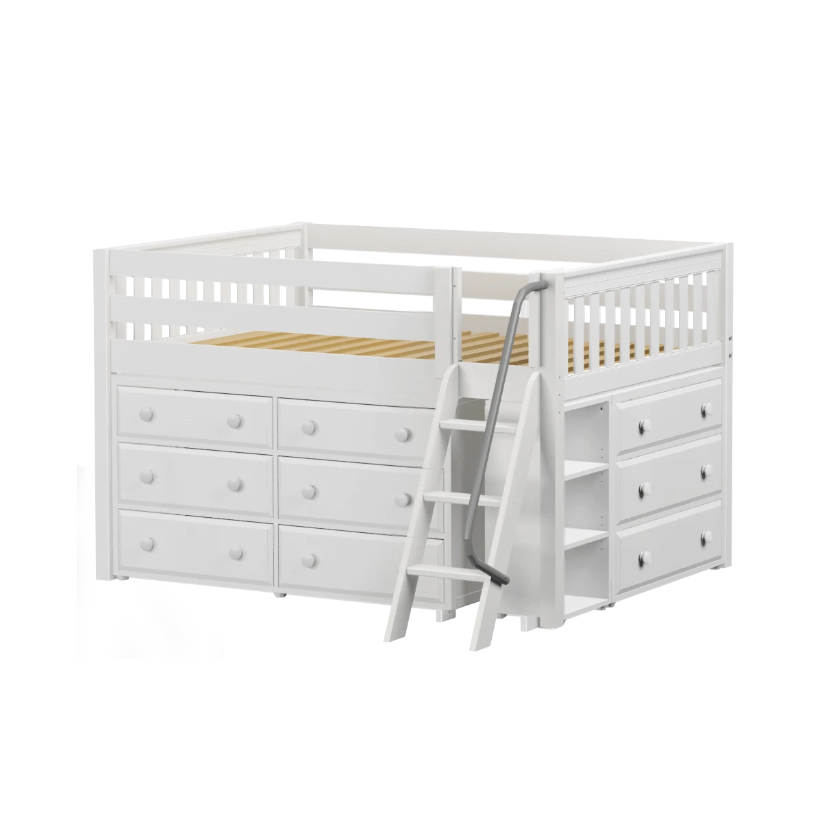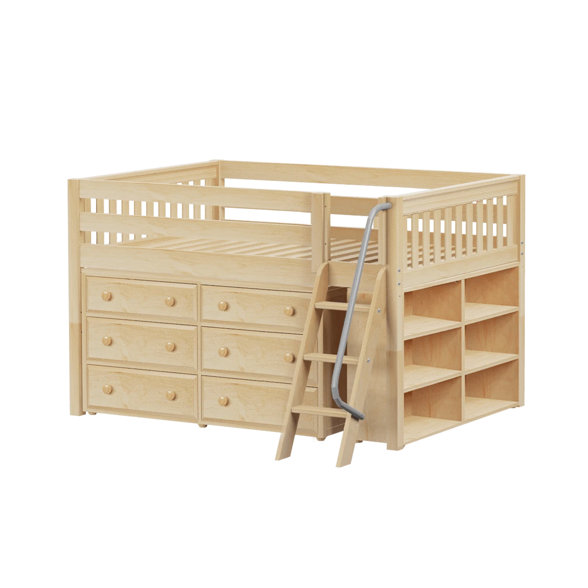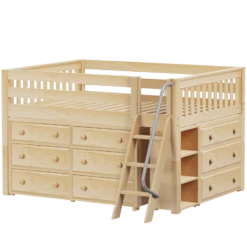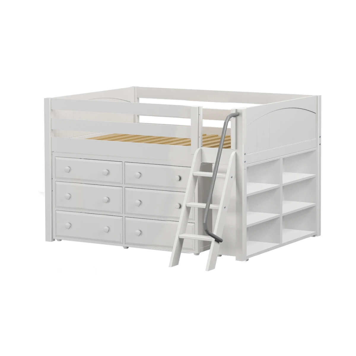 Our classic low loft bed with angled ladder becomes the ultimate storage cube! Dressers, bookcases + cube units all designed to fit perfectly. Each piece is freestanding so you can use separately for years to come. Full size = extra room for growing kids, sleepovers or snuggling.