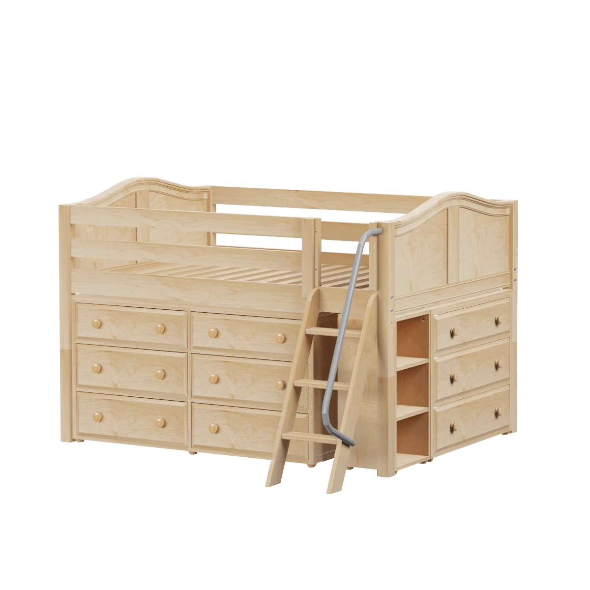 Gain storage without losing floorspace! Our low loft bed with storage is the perfect solution for anyone tight on space or just wanting to keep rooms tidy + organized.