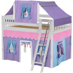 Our best-selling mid loft bed gets an extra dose of fun with the addition of colorful fabrics. Curtains + matching top tent will inspire your child’s imagination during the day and help them sleep soundly at night. Full size = extra room for growing kids, sleepovers or snuggling.