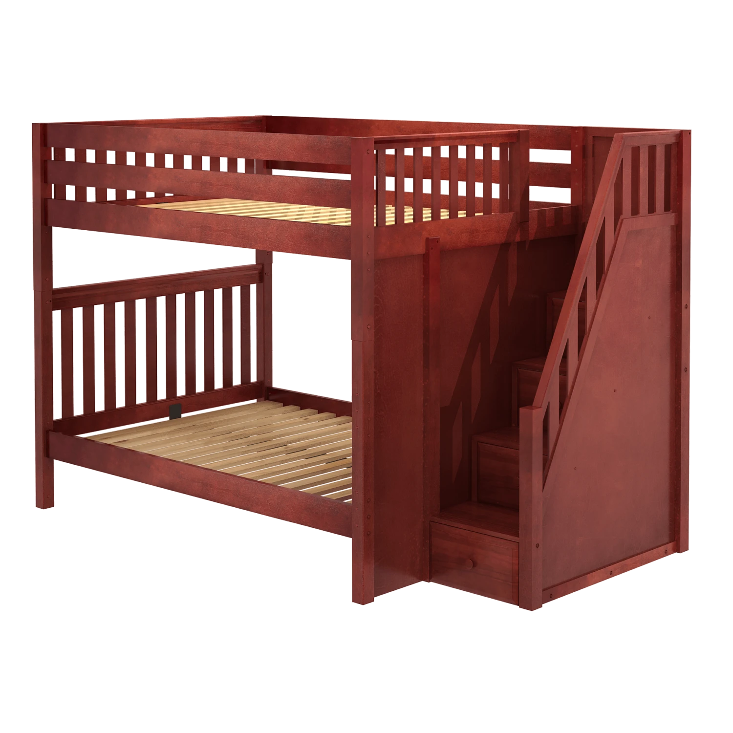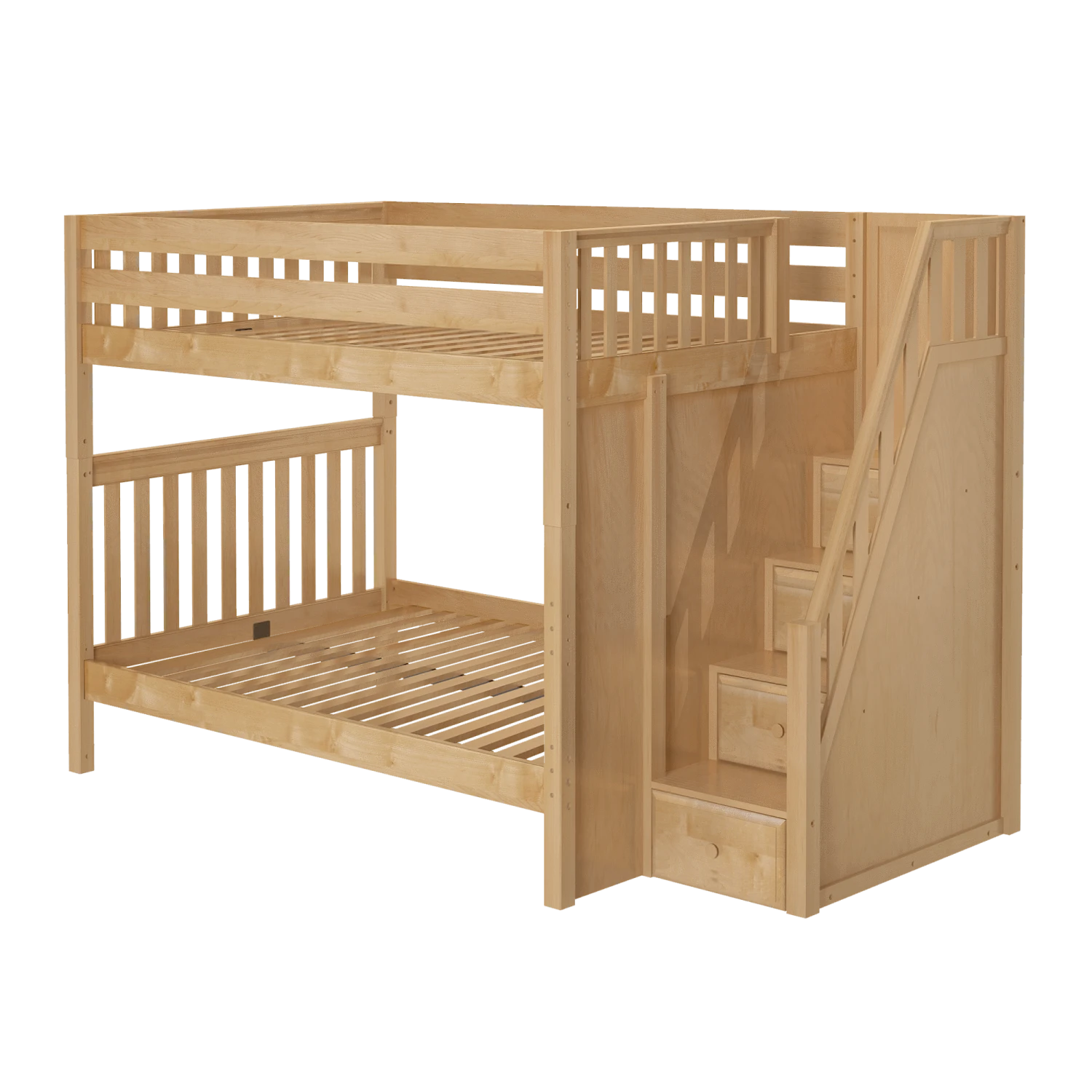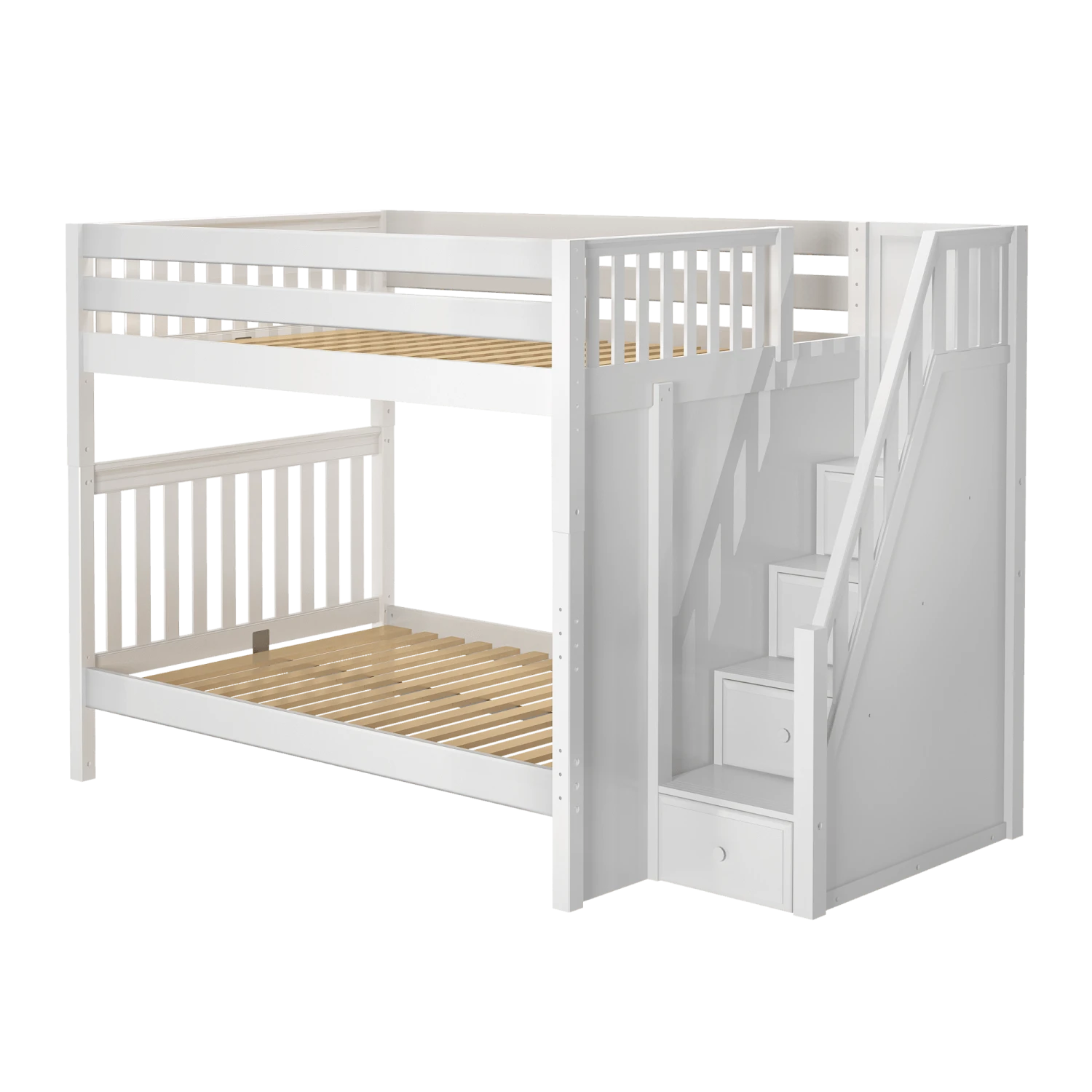 Staircase is an easy way for younger kids to climb up top and sturdy enough for adults. Each step has a deep drawer, providing built in storage to help keep bedrooms tidy.