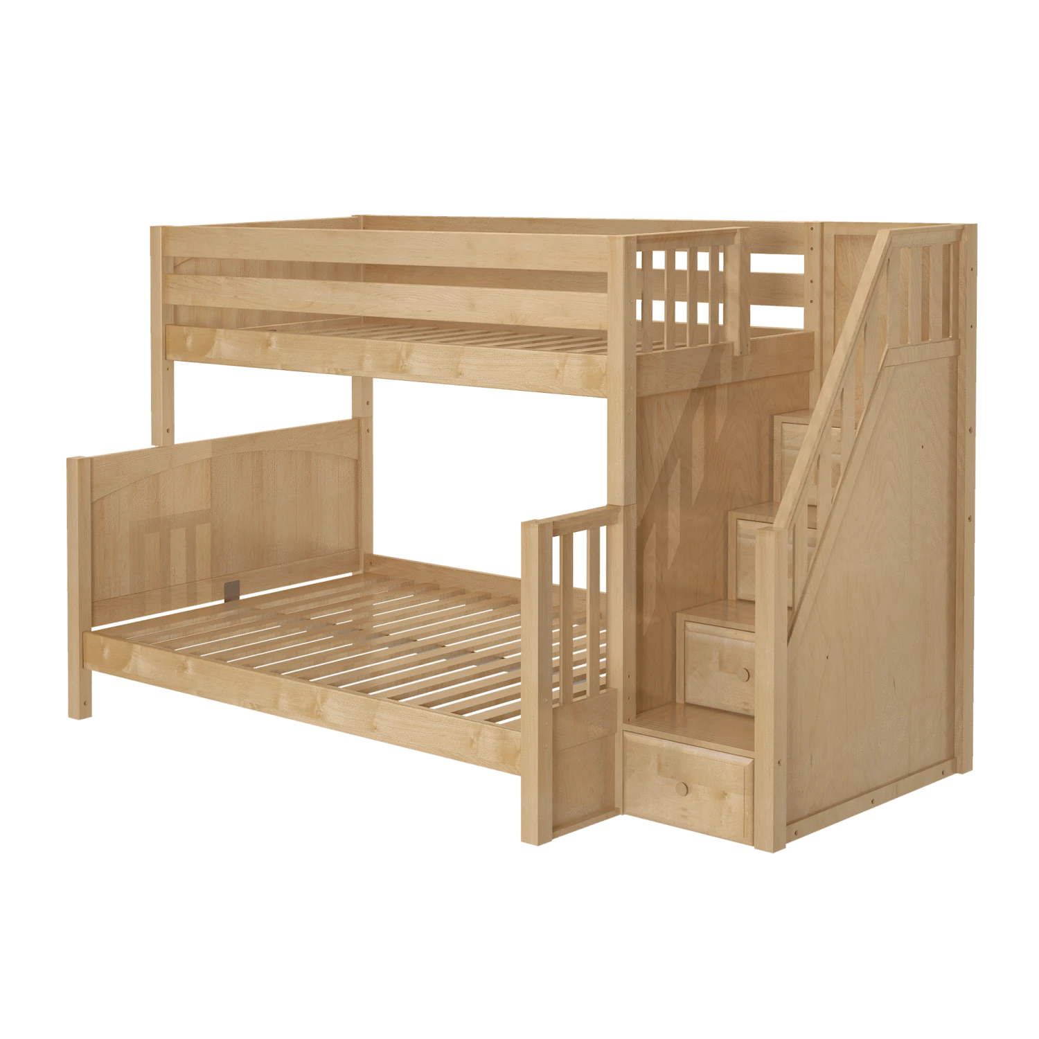 Sleep different sizes and ages comfortably in our twin over full bunk bed with stairs! Full size bed as bottom bunk = extra space for snuggling, sleepovers or adult guests. Staircase is a safe way for young children to climb into bed, plus each step doubles as a storage drawer. A Maxtrix Kids best seller.
