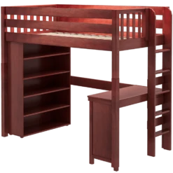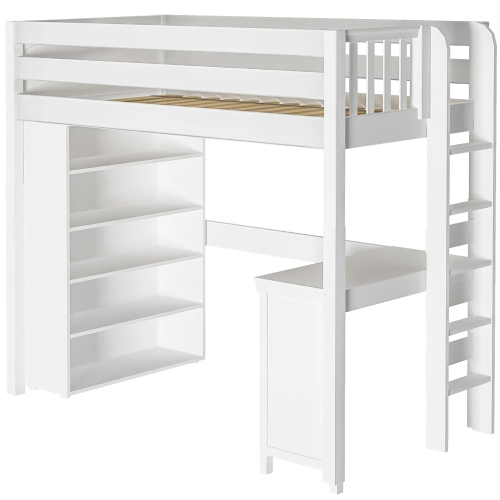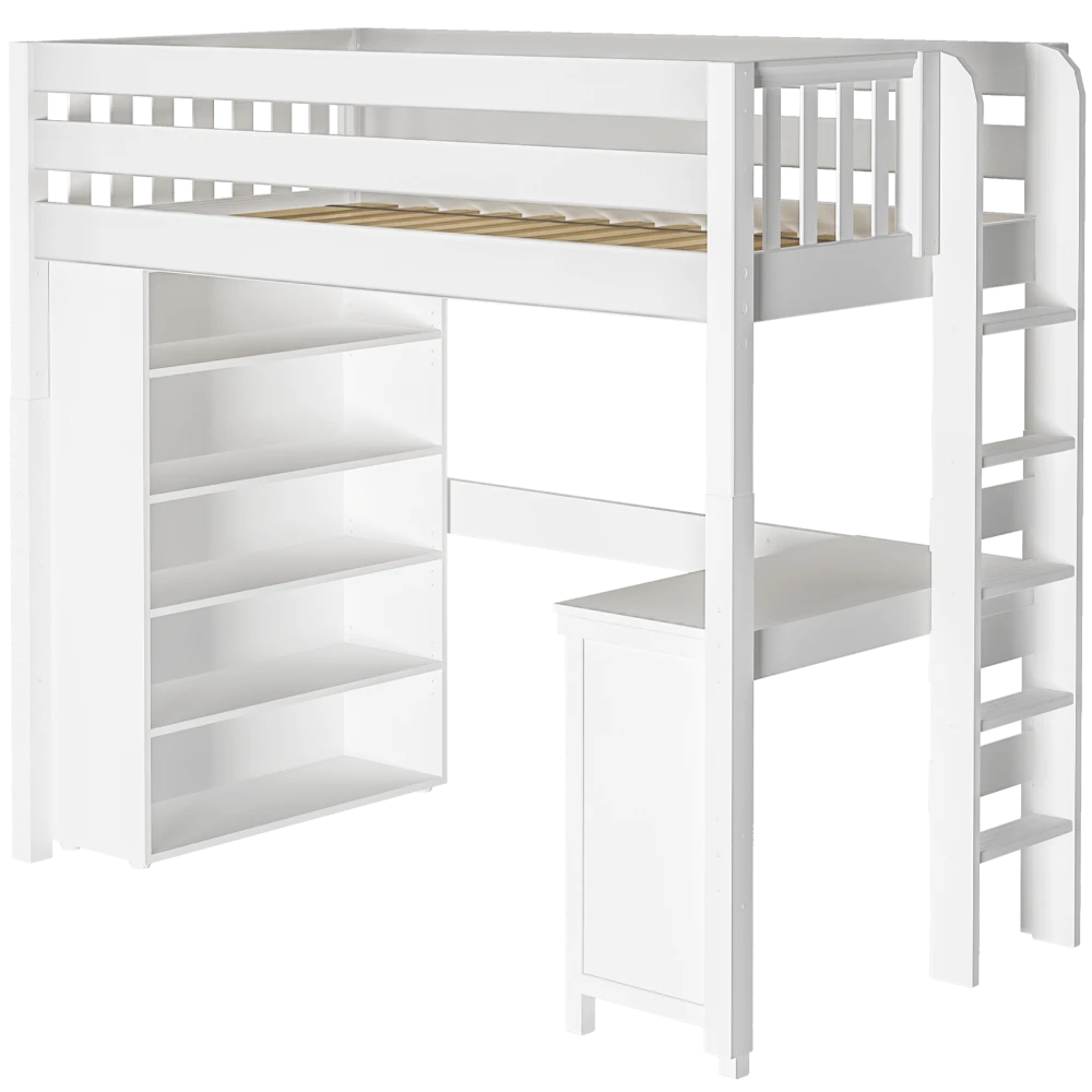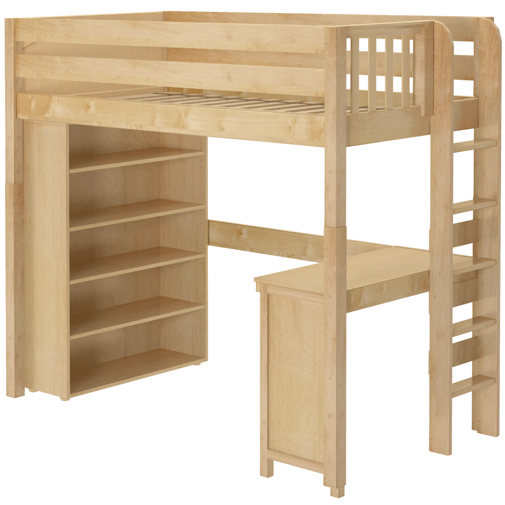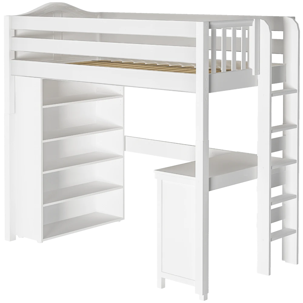 Sleep, Storage & Study! This all-in-one, compact design is the perfect addition to your child’s bedroom. High loft bed with bookcase on one end and desk at the other creates an ideal study nook, without losing valuable floorspace.