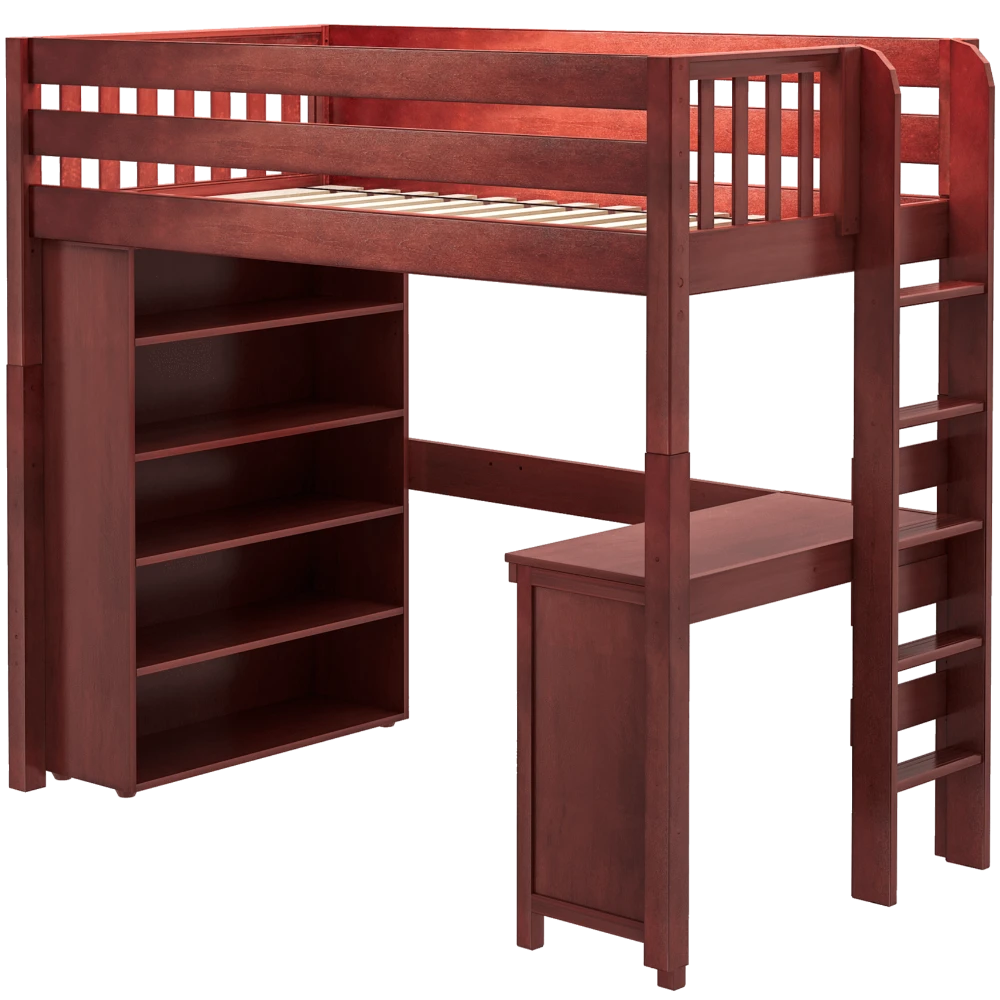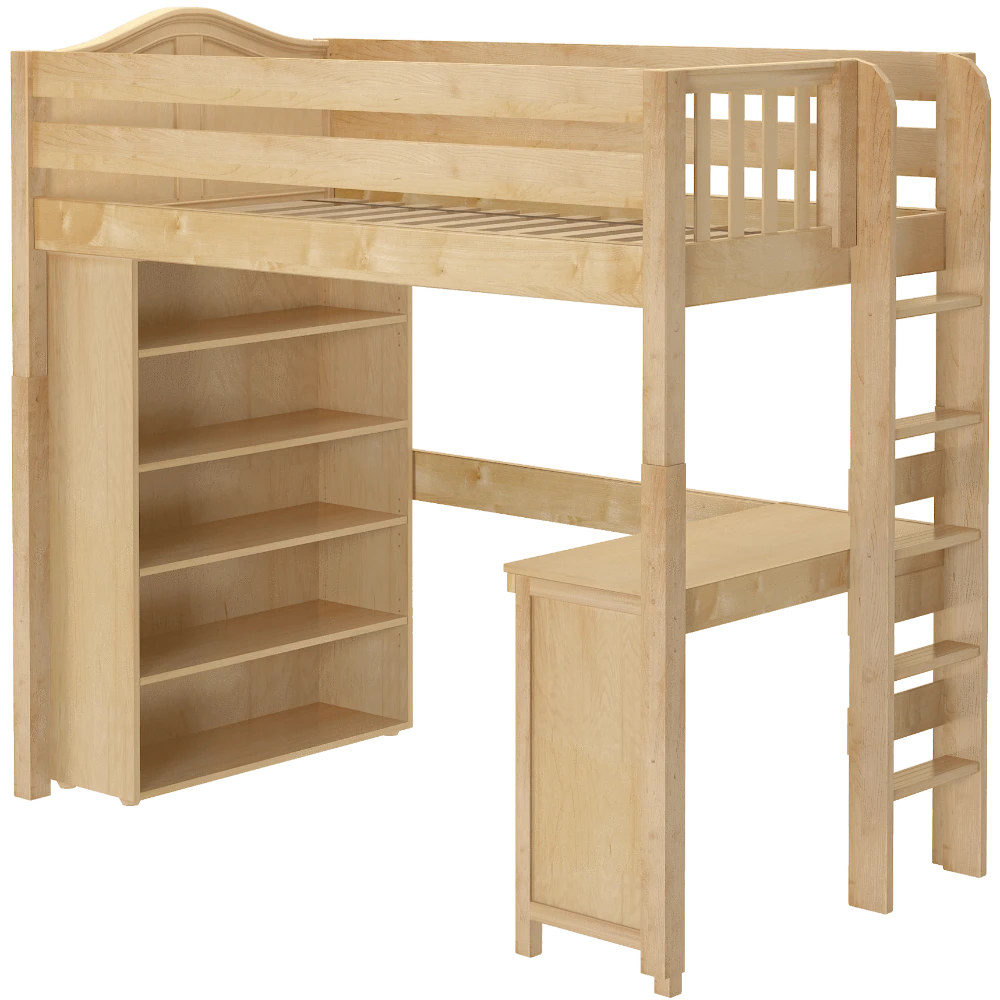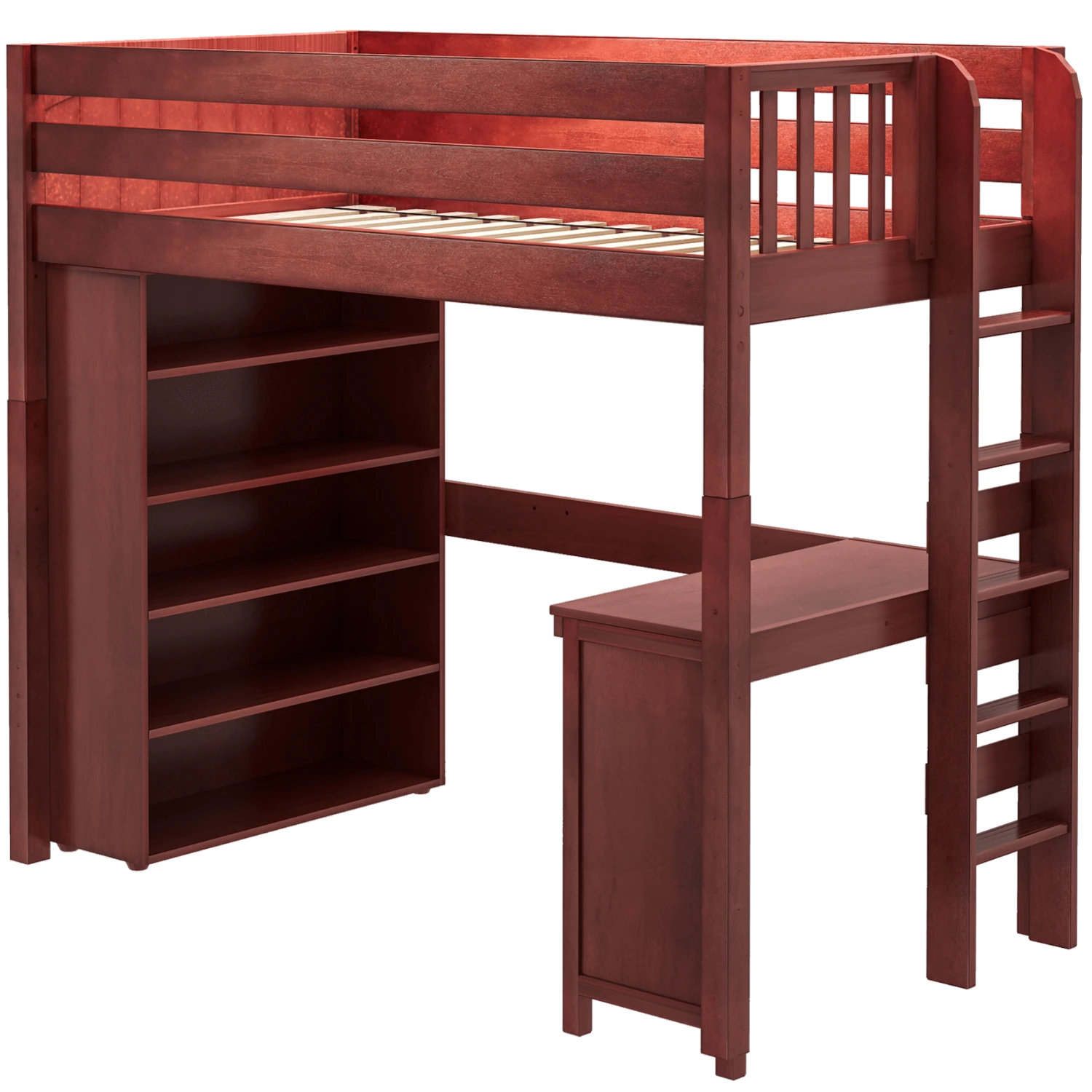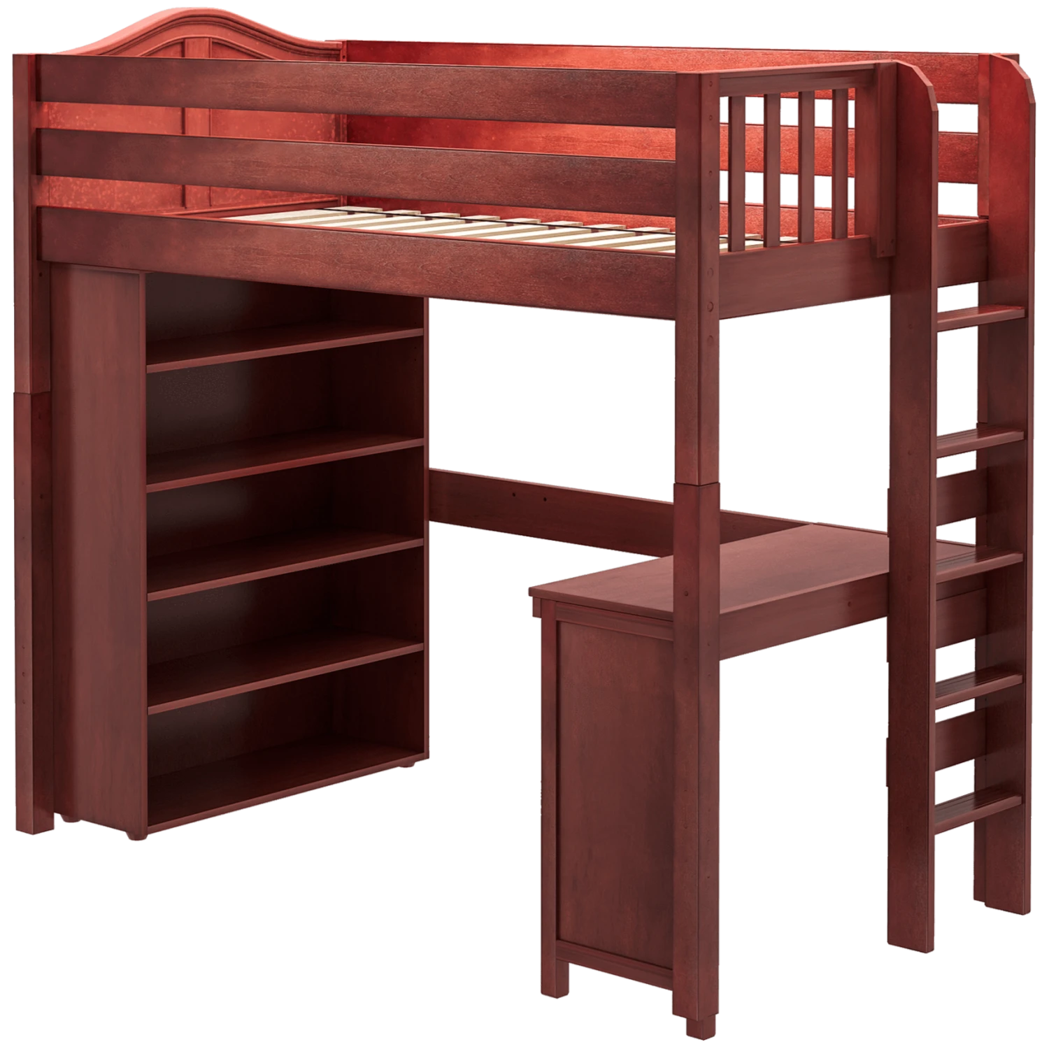 Sleep, Storage & Study! This all-in-one, compact design is the perfect addition to your child’s bedroom. High loft bed with bookcase on one end and desk at the other creates an ideal study nook, without losing valuable floorspace.