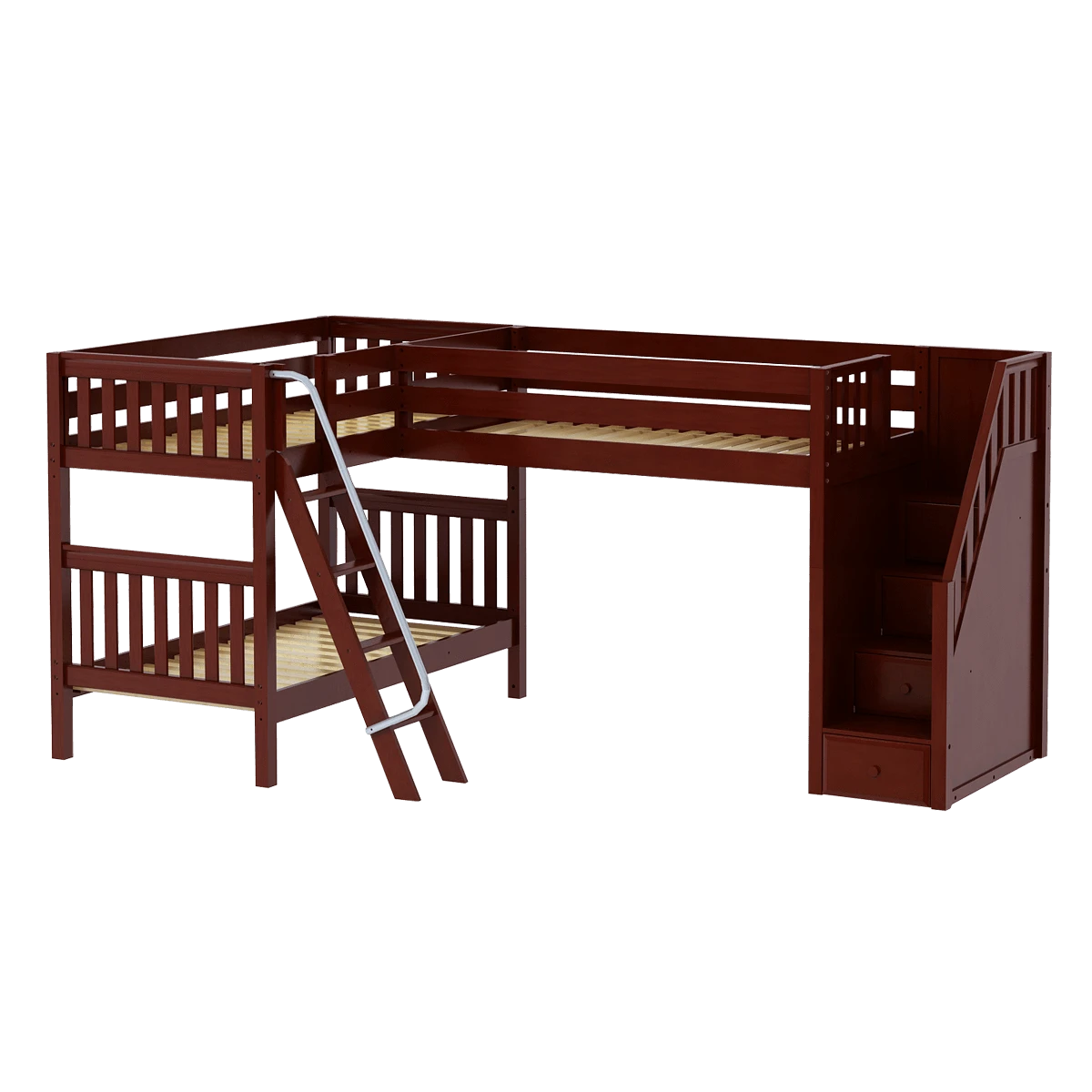 Maxtrix Twin XL High Corner Loft Bed With Ladder + Stairs – L
