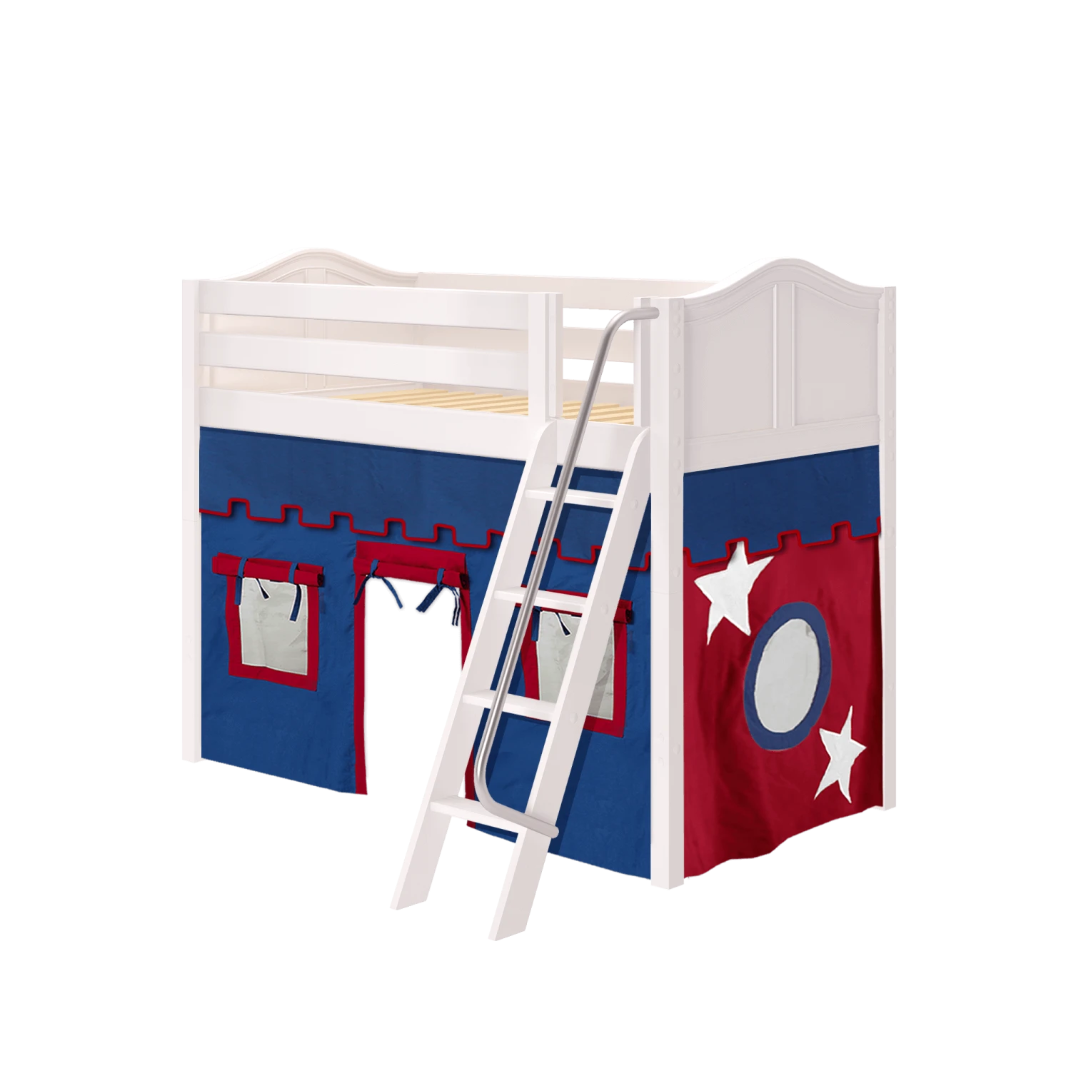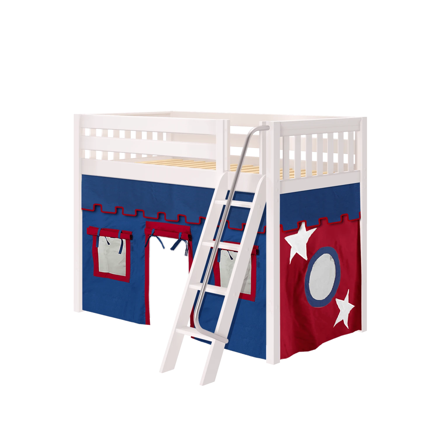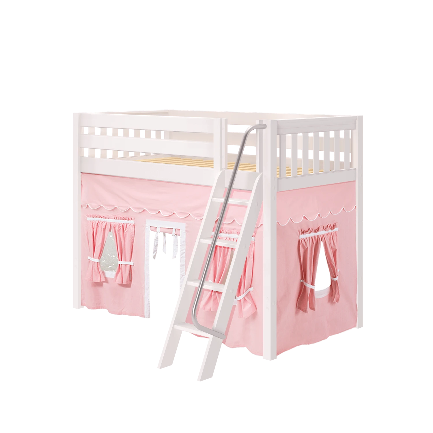 Be the first to review “Maxtrix Twin Mid Loft Bed With Angled Ladder + Curtain” Cancel reply