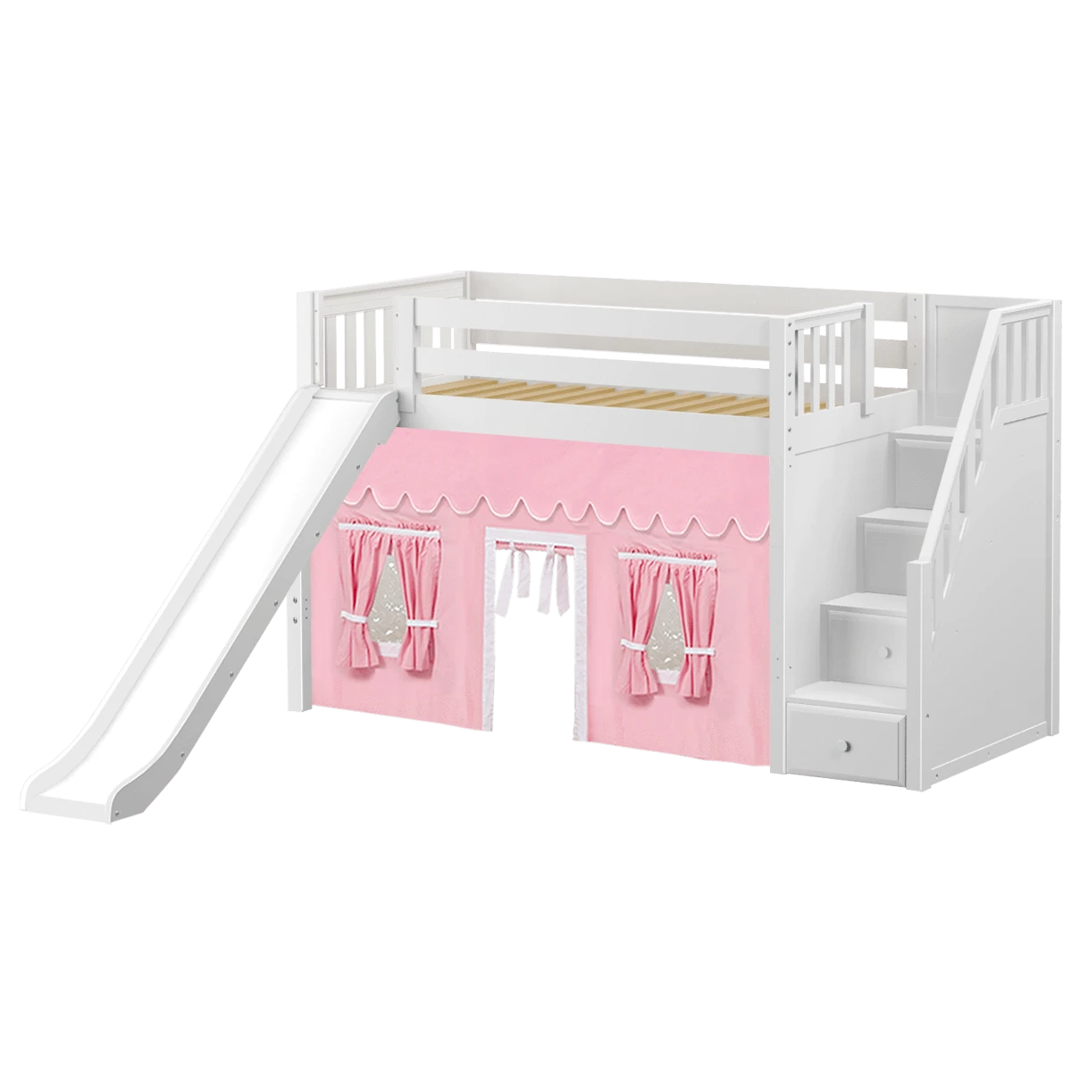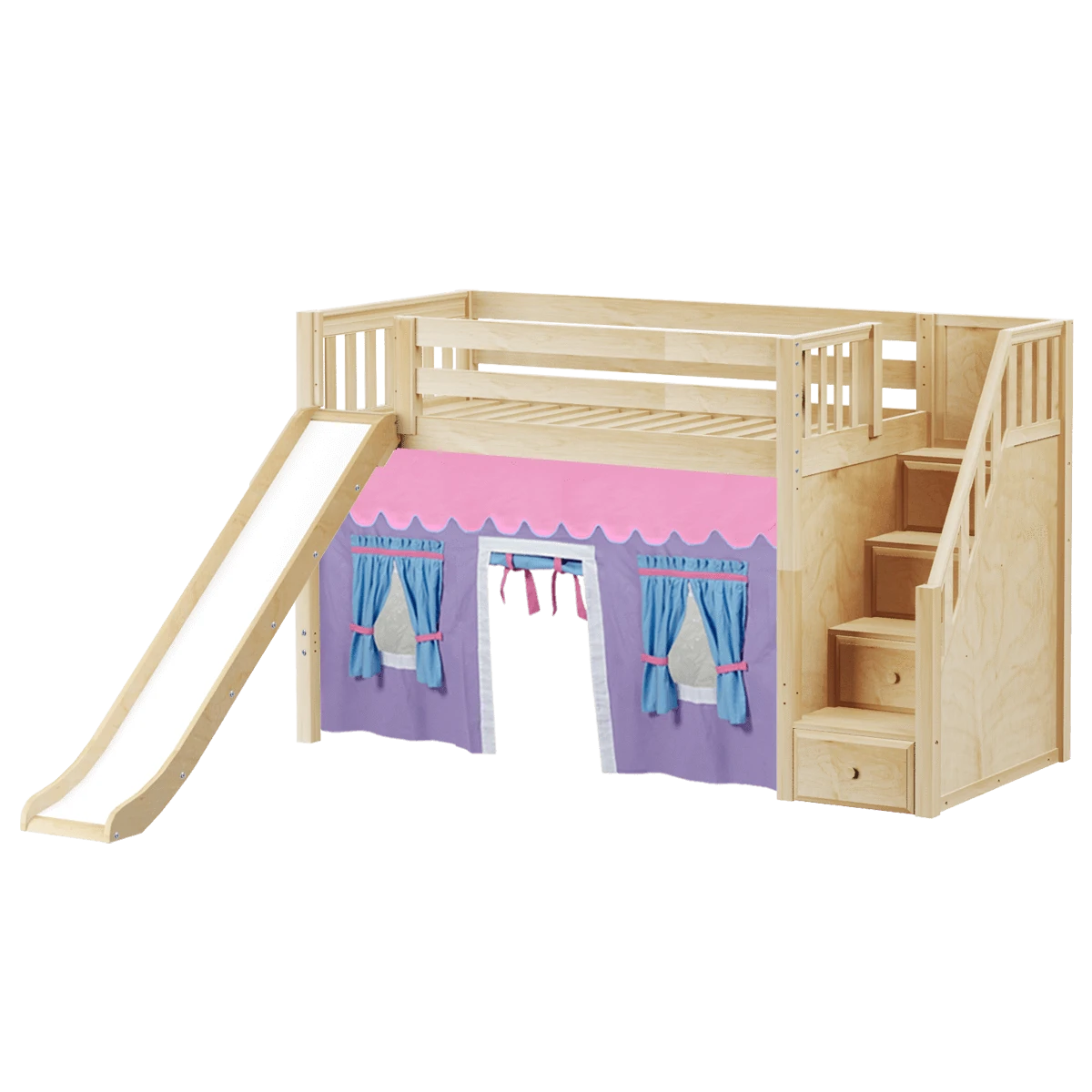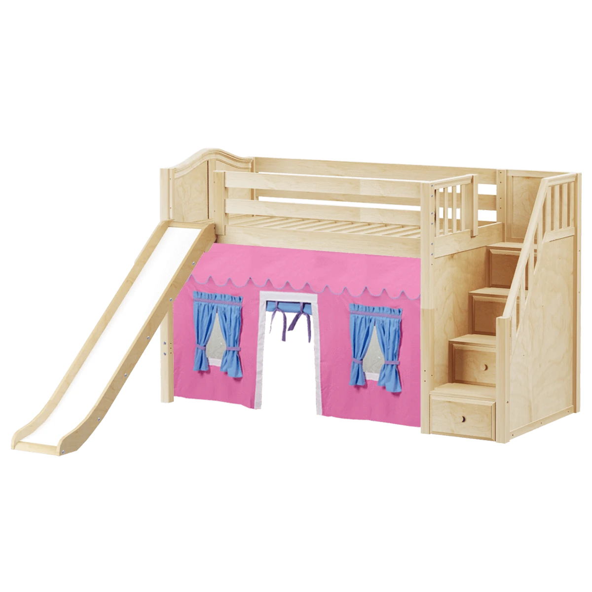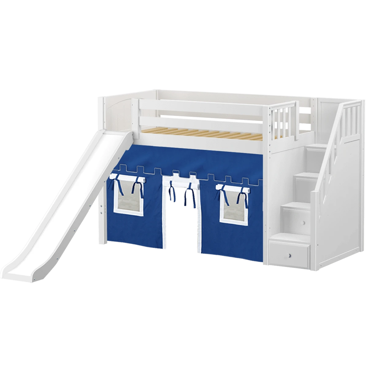 Be the first to review “Maxtrix Twin Mid Loft Bed With Stairs, Curtain + Slide” Cancel reply