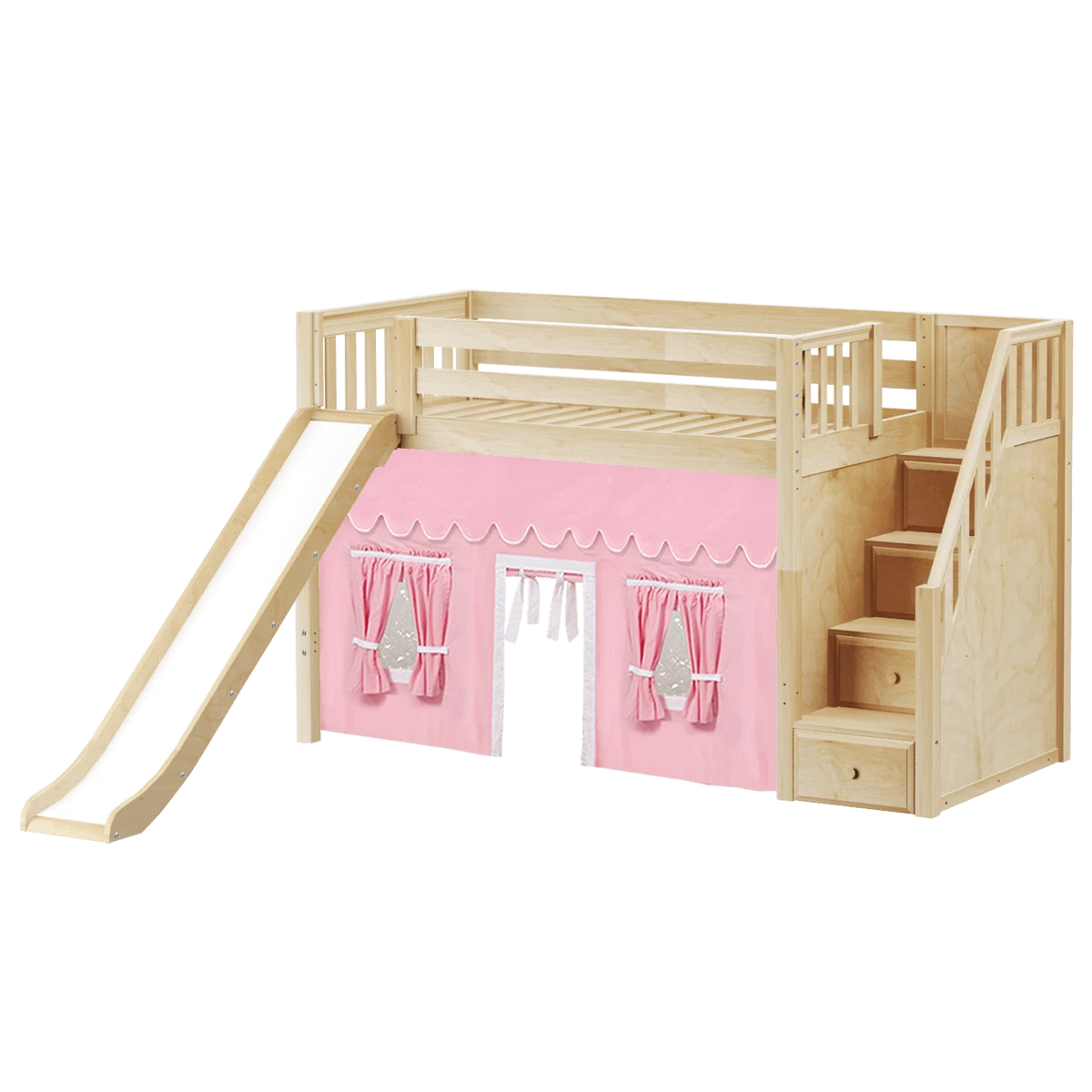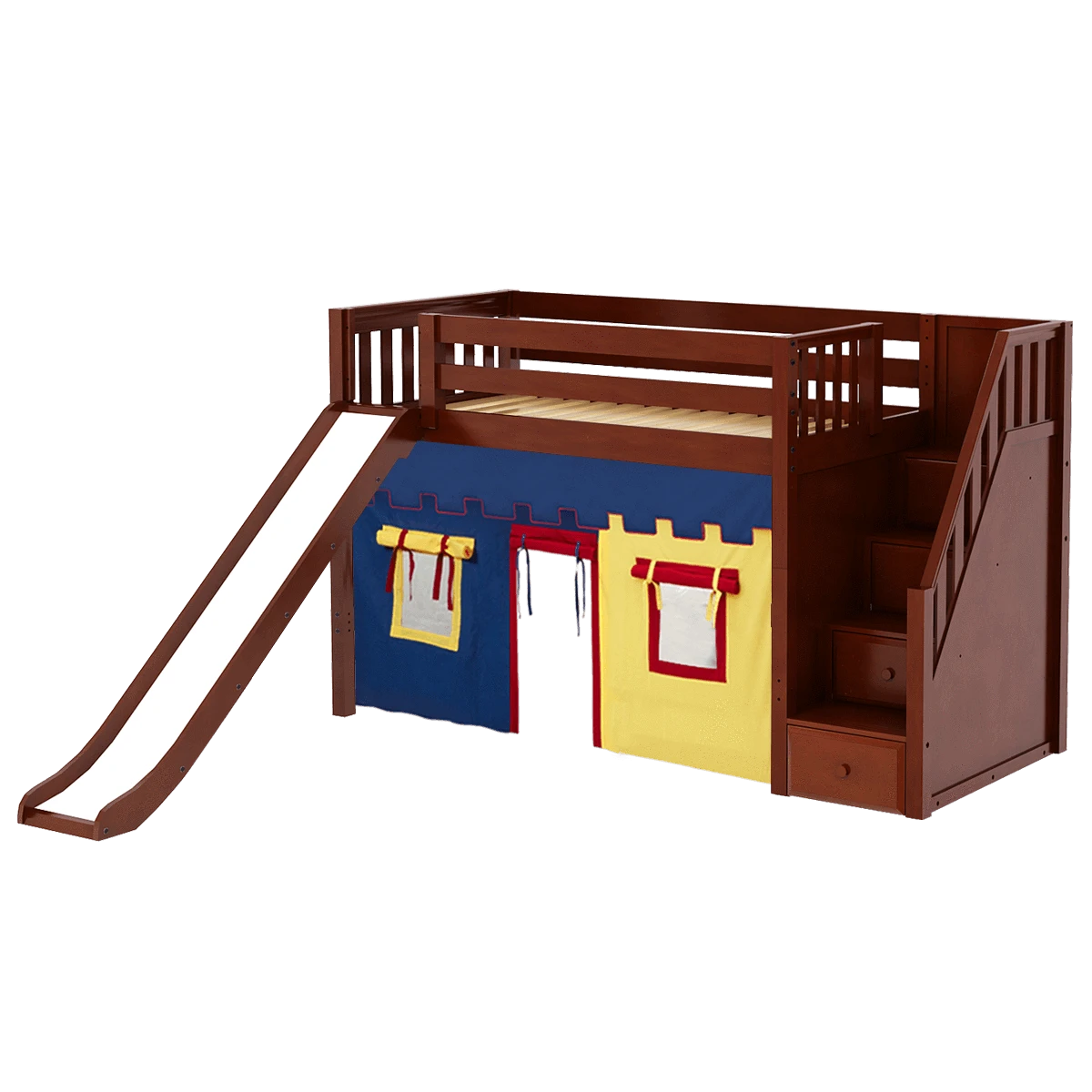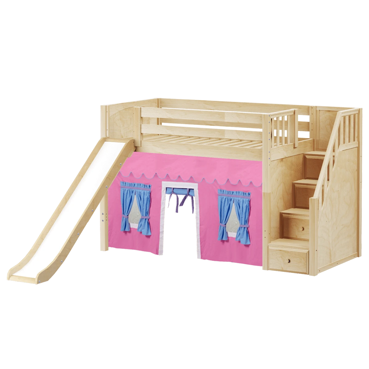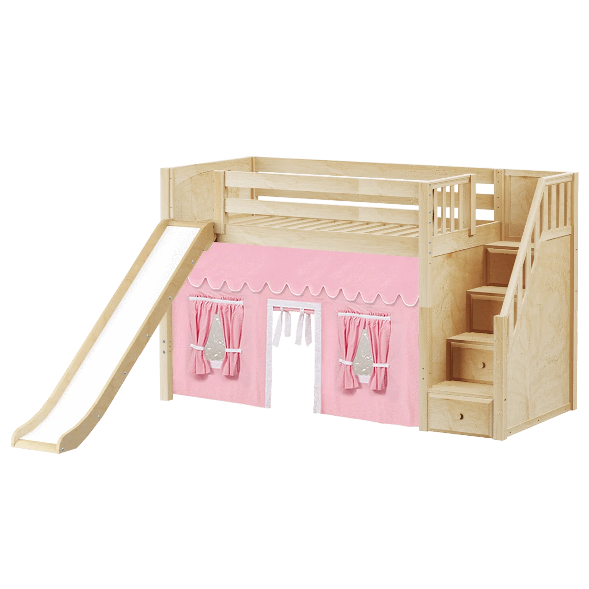 Be the first to review “Maxtrix Twin Mid Loft Bed With Stairs, Curtain + Slide” Cancel reply