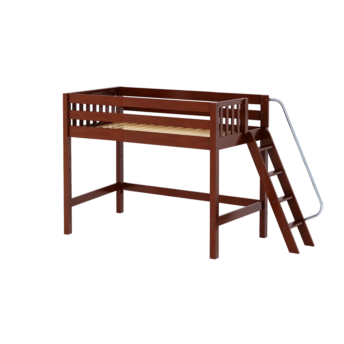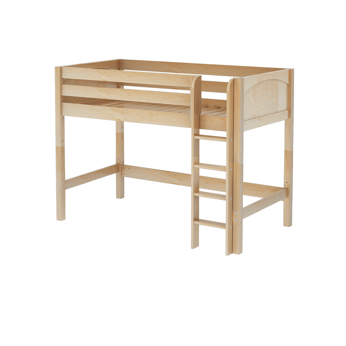 Raised high enough for ample underbed space, but still suitable for younger children and low ceilings, our popular twin mid loft bed with ladder works for all!