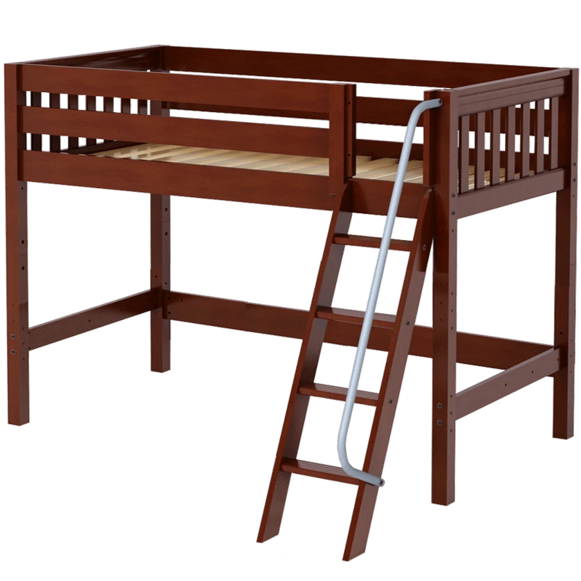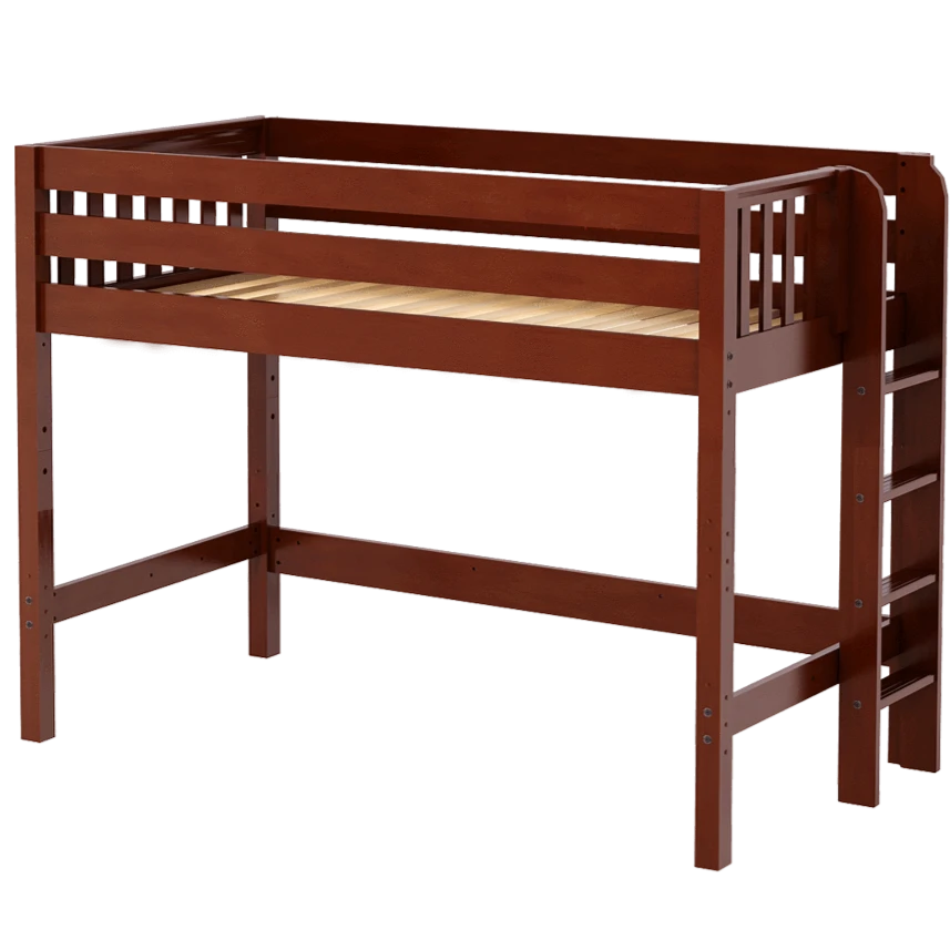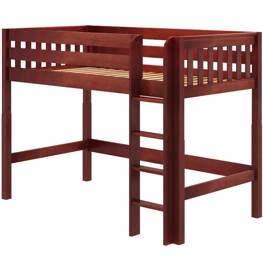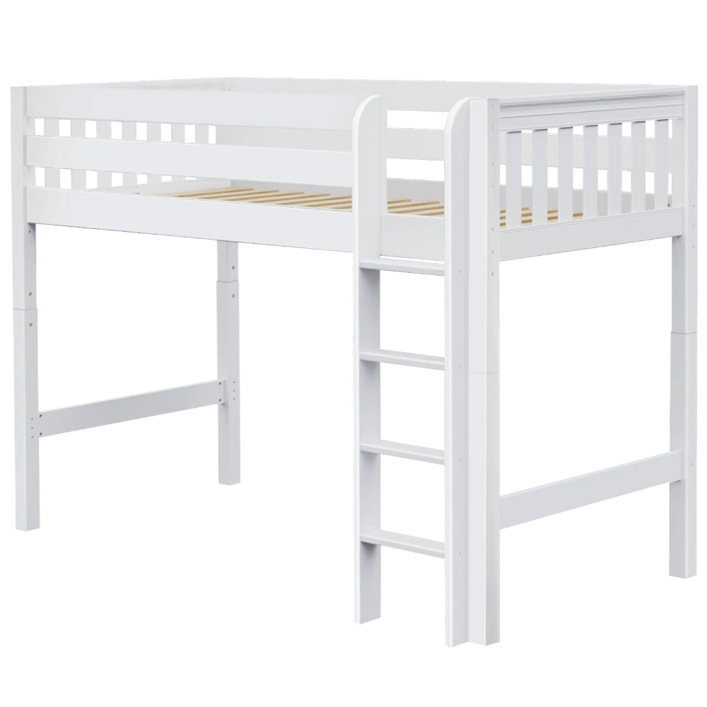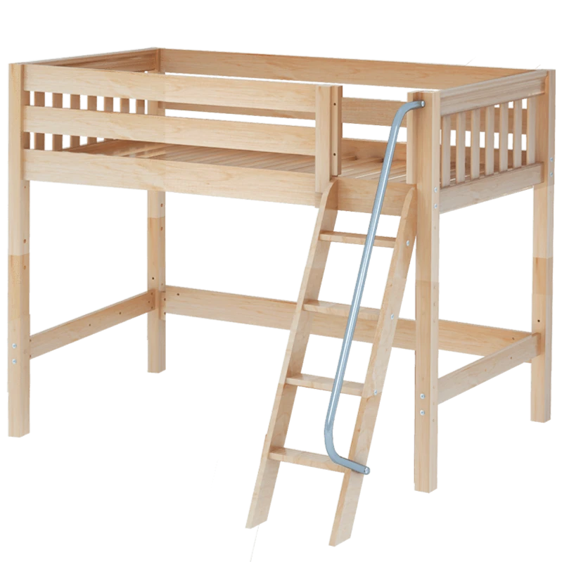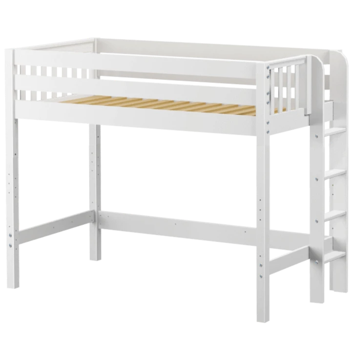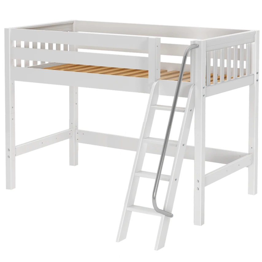 Raised high enough for ample underbed space, but still suitable for younger children and low ceilings, our popular mid loft bed with ladder works for all! Twin XL = standard twin width (42.5”) + additional 4” length (84”). Requires Twin XL mattress.