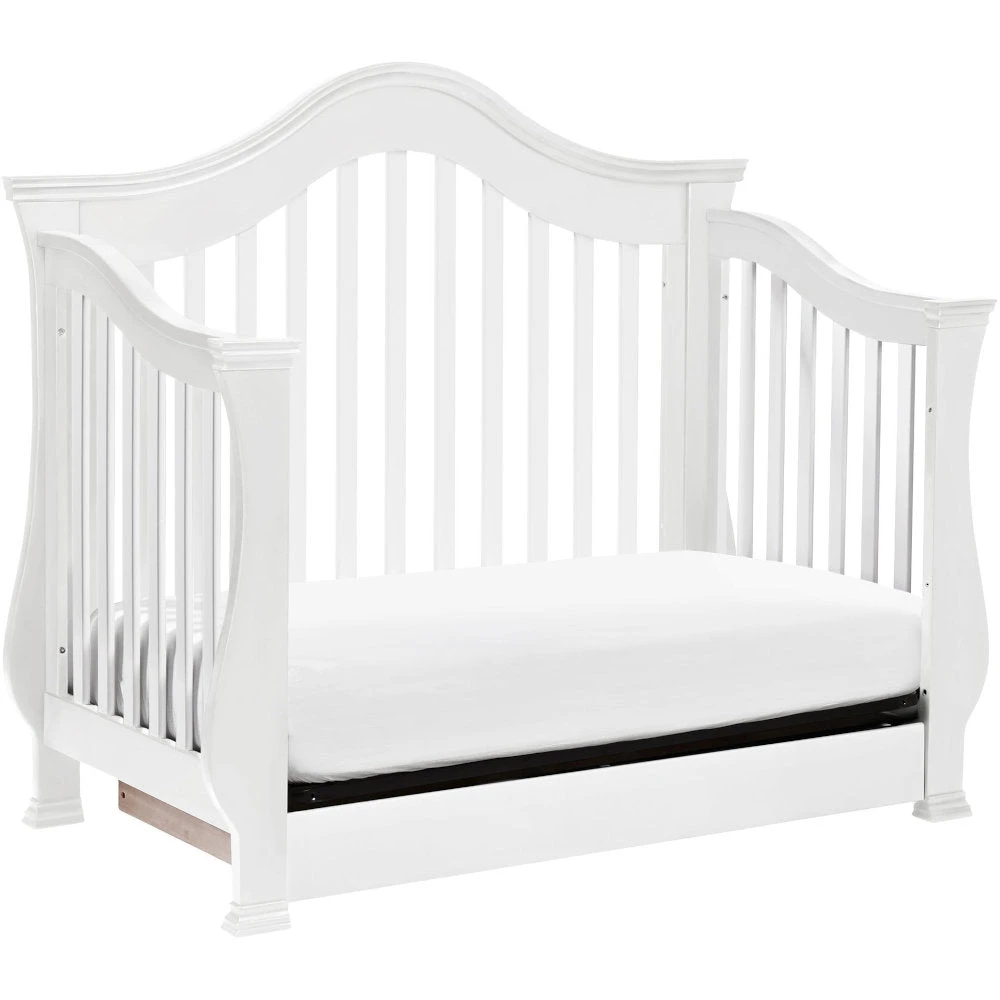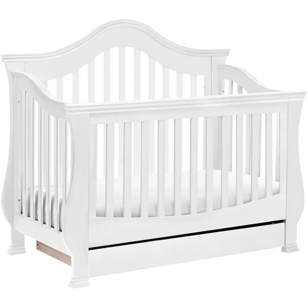 The Ashbury 4-in-1 Convertible Crib is adorned with elegant curves and luxurious details. The arched back-panel and thick slats are sturdy and provide solid support for baby. Winged corners and curved posts elicit traditional charm, and the spacious under-drawer provides extra storage for baby’s essentials.