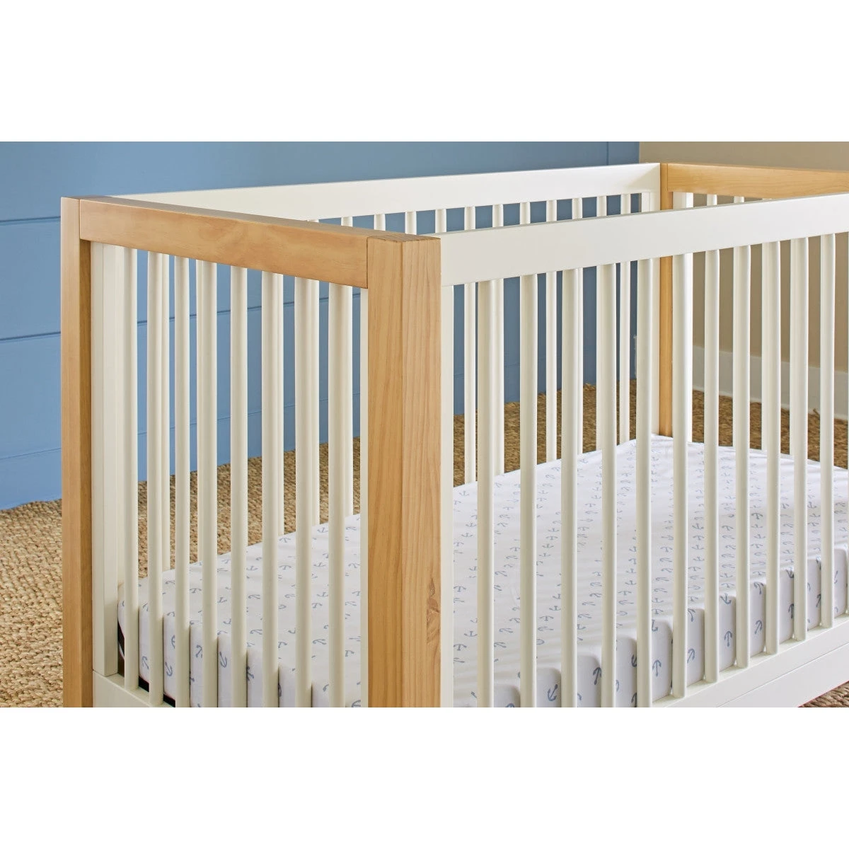 Crisp and minimalistic, the Nantucket 3-in-1 Convertible Crib is a modern take on the classic coastal design, with its clean lines and natural wood grains. Featuring neutral-hued wooden frames, balanced by rounded slats, the Nantucket is a transitional piece that will grow with your family.