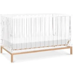 The Luma Crib seamlessly integrates form and function in the nursery space. The crib marries our signature acrylic aesthetic with an au courant rose gold touch. With four clear sides perforated by defined slats, the Luma creates an airy space for baby to play, relax and sleep, and allows you to have a clear view of baby from anywhere in the nursery.