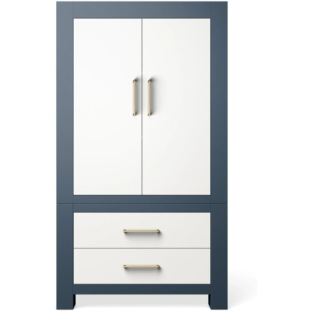 Ventianni Armoire is a statement furniture piece transforming any nursery into a furniture studio. The Armoire offers a balanced mix of storage spaces with two drawers, an adjustable shelf behind the doors and a hanging rod for those fancy clothing photo sessions.  The door cabinet space can be customized by adding another shelf or adjusting the height position.