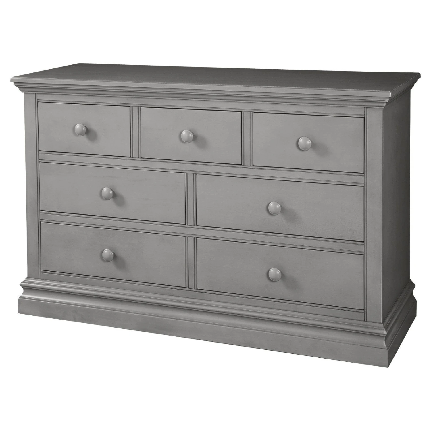 The Pine Ridge/Stone Harbor Double dresser has 7 drawers for all dressing and changing necessities. This Double Dresser is compatible with the Pine Ridge/Stone Harbor Chest and convertible bookcase for a complete look for any nursery. A changing kit is also available so you can use the top of the dresser for a changing station. Kit is sold separately. The double dresser chest has wooden dovetail drawers, concealed ball bearing glides, and features traditional furniture construction. Perfect for the nursery and beyond from child to adulthood.